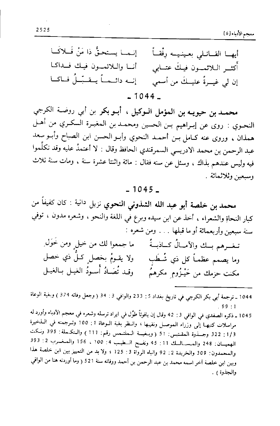 [1044] ترجمة أبي بكر الكرجي في تاريخ بغداد 5: 233 والوافي 3: 34 (وجعل وفاته 374) وبغية الوعاة 1: 99.