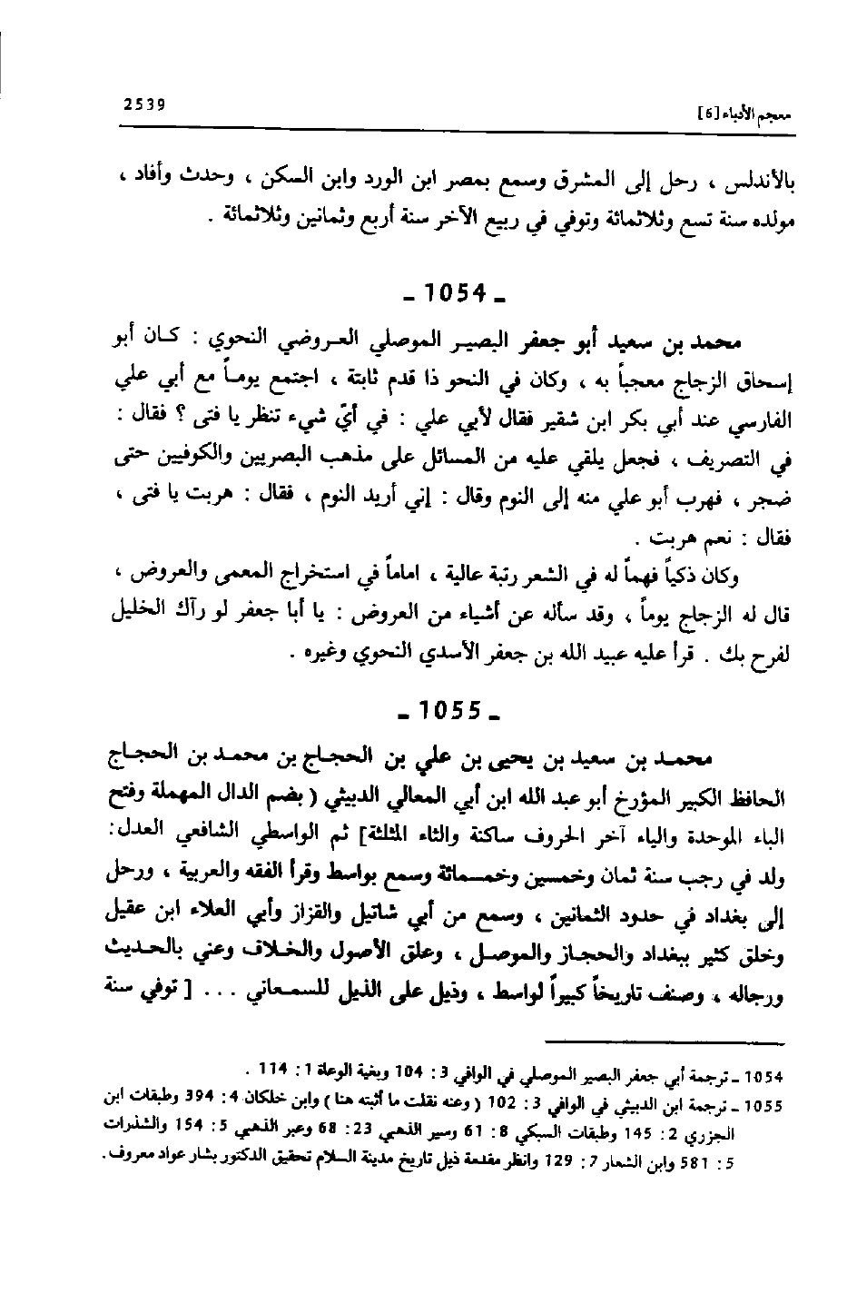 [1054] ترجمة أبي جعفر البصير الموصلي في الوافي 3: 104 وبغية الوعاة 1: 114.