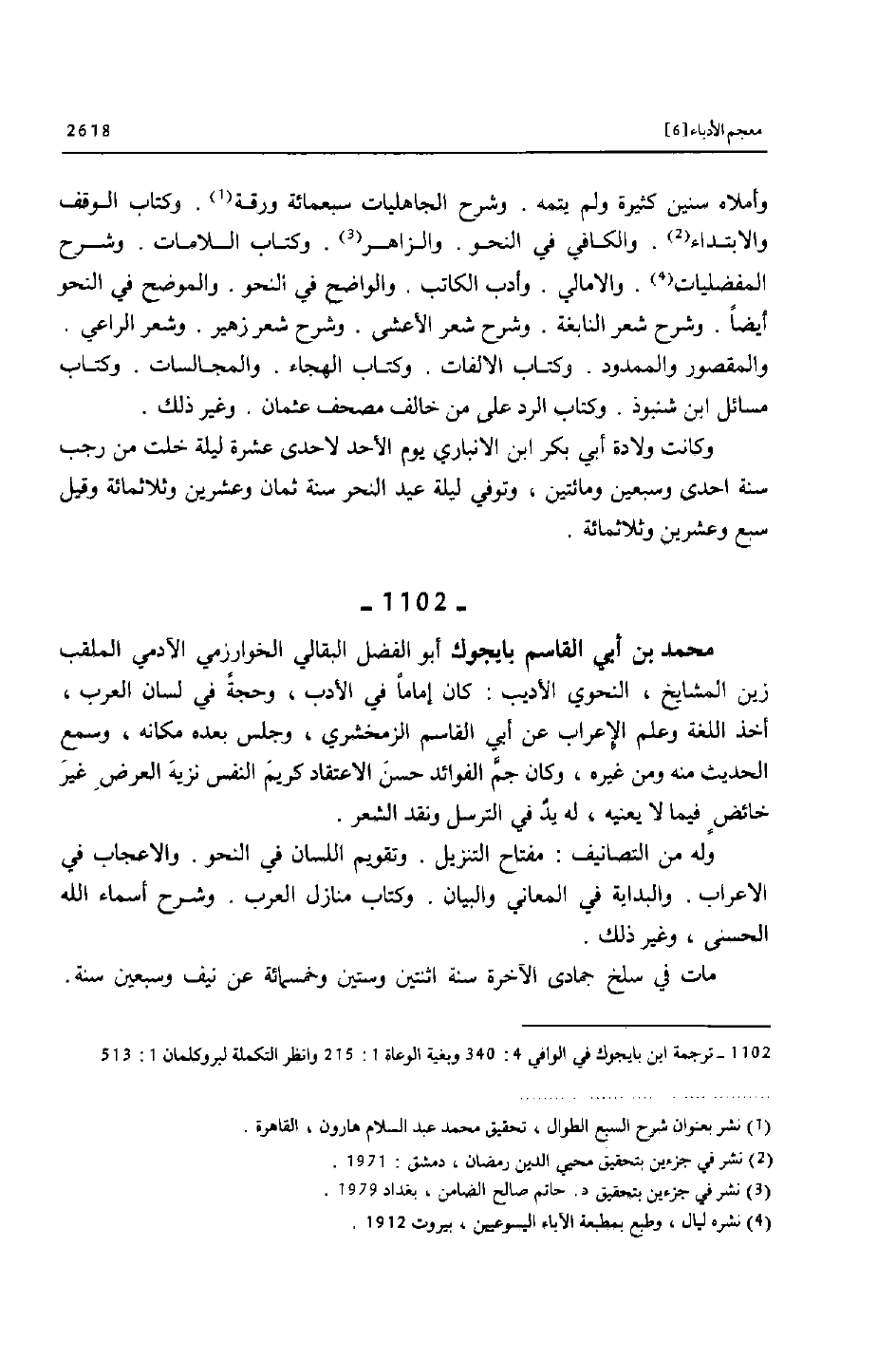 [1102] ترجمة ابن بايجوك في الوافي 4: 340 وبغية الوعاة 1: 215 وانظر التكملة لبروكلمان 1: 513