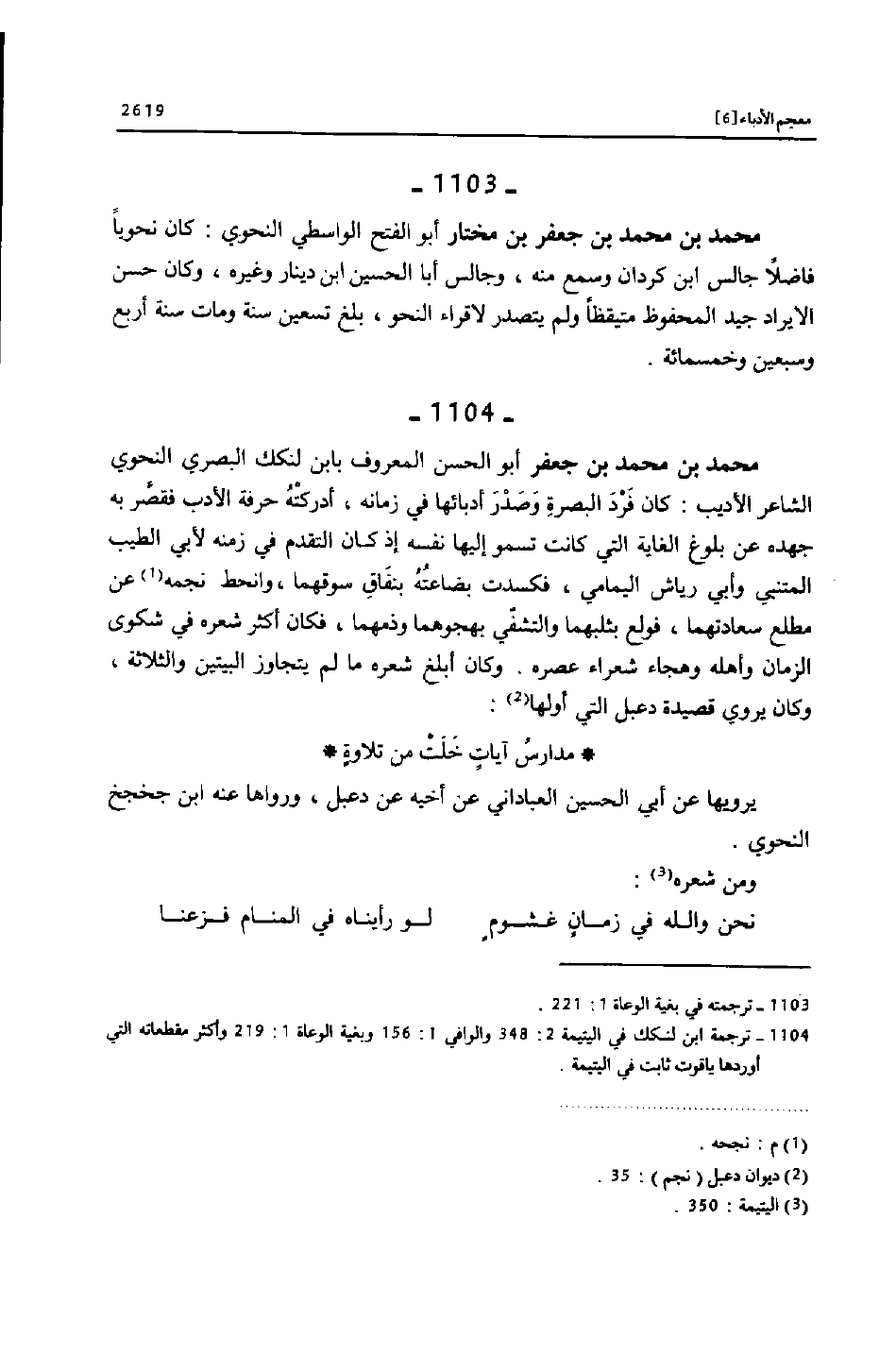 [1104] ترجمة ابن لنكك في اليتيمة 2: 348 والوافي 1: 156 وبغية الوعاة 1: 219 وأكثر مقطعاته التي أوردها ياقوت ثابت في اليتيمة.