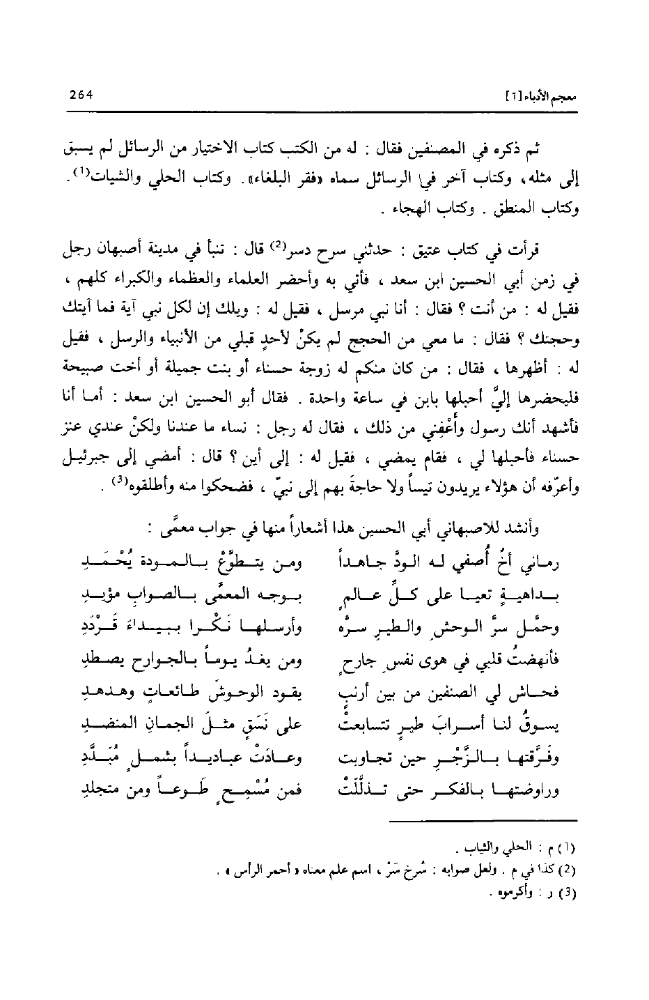 وأنشد للاصبهاني أبي الحسين هذا أشعارا منها في جواب معمّى: