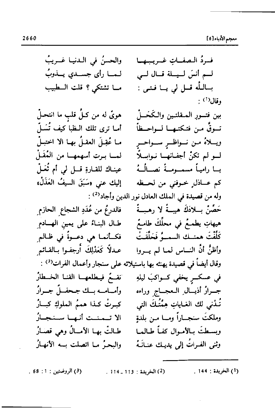 وقال أيضا في قصيدة يهنئه بها باستيلائه على سنجار وأعمال الفرات»
