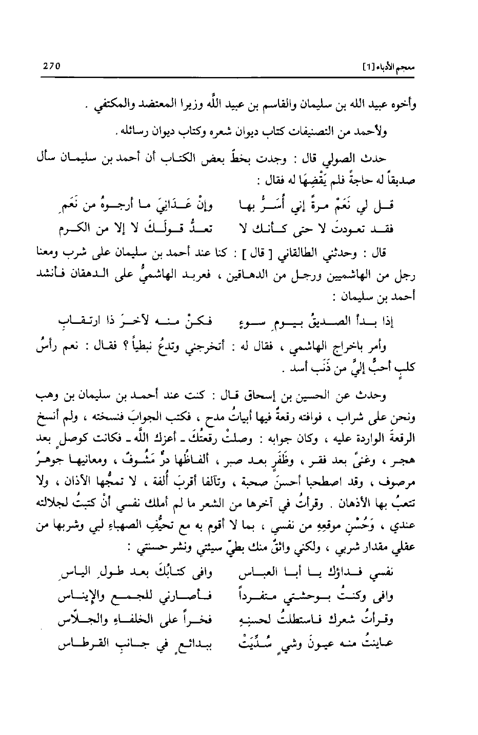 حدث الصولي قال: وجدت بخطّ بعض الكتاب أن أحمد بن سليمان سأل صديقا له حاجة فلم يقضها له فقال: