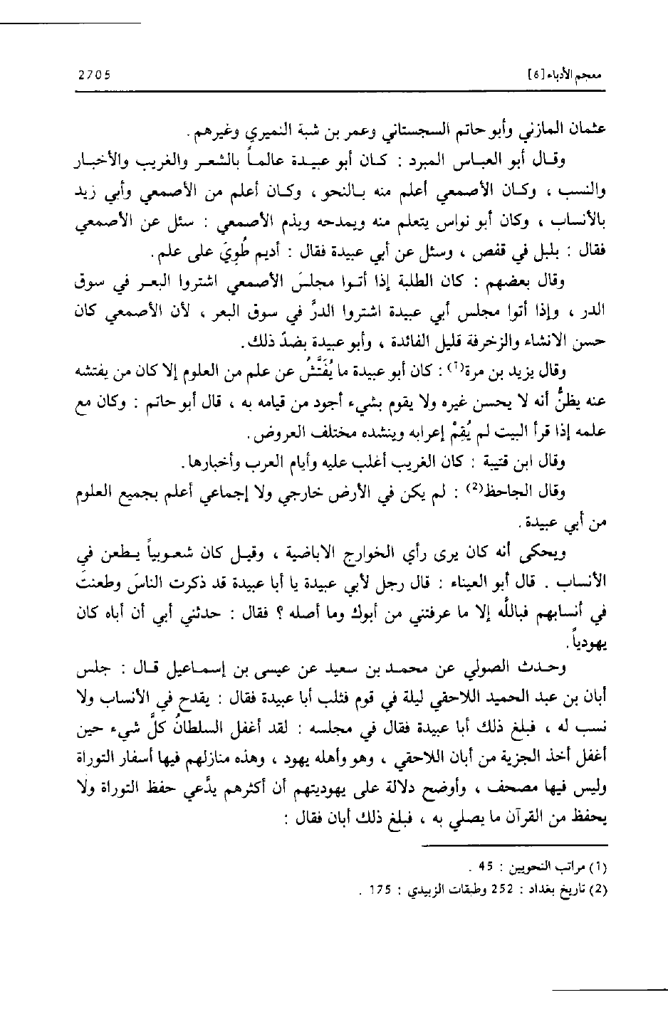 عثمان المازني وأبو حاتم السجستاني وعمر بن شبة النميري وغيرهم.