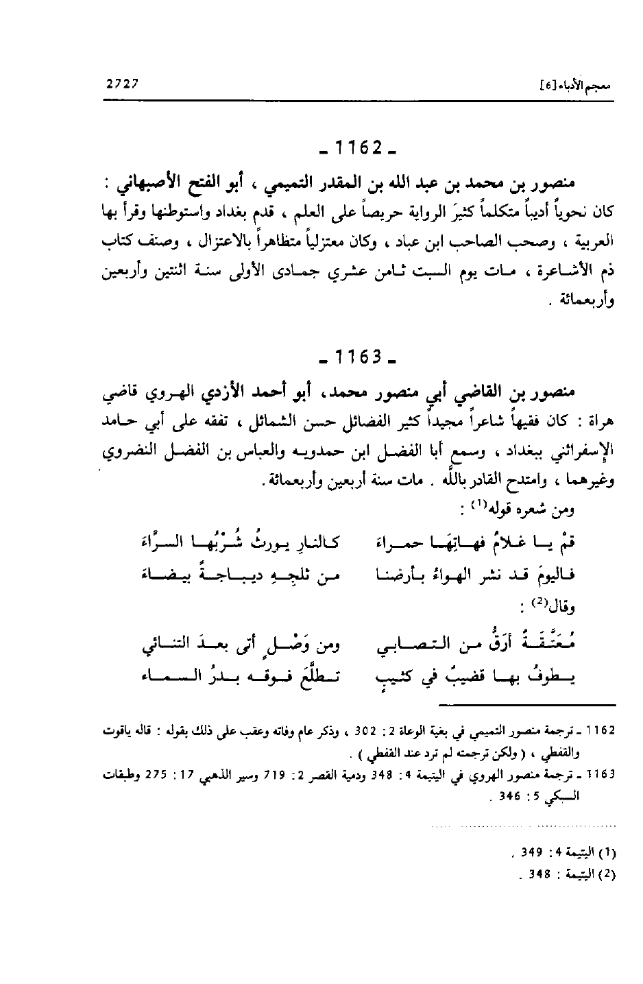 [1163] ترجمة منصور الهروي في اليتيمة 4: 348 ودمية القصر 2: 719 وسير الذهبي 17: 275 وطبقات السبكي 5: 346.