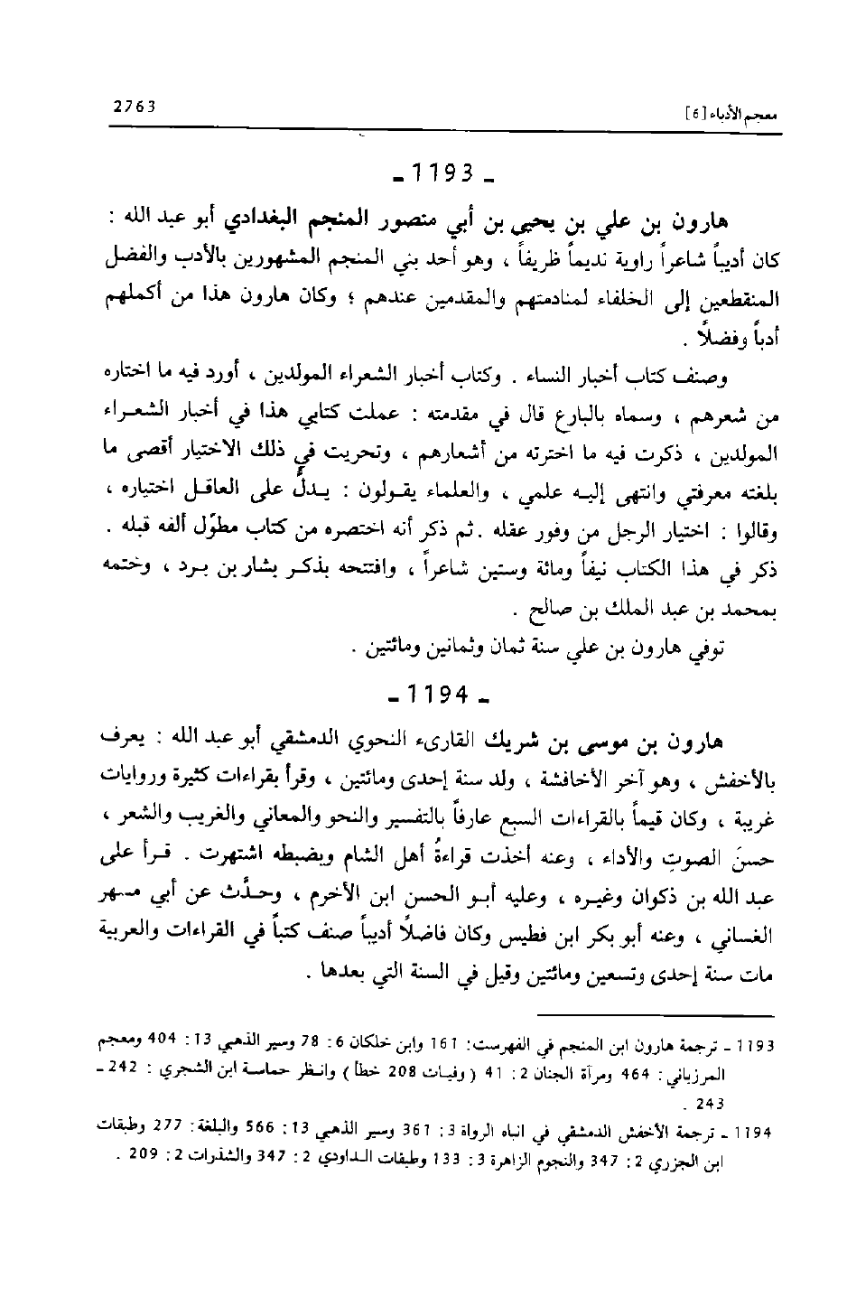 [1193] ترجمة هارون ابن المنجم في الفهرست: 161 وابن خلكان 6: 78 وسير الذهبي 13: 404 ومعجم المرزباني: 464 ومرآة الجنان 2: 41 (وفيات 208 خطأ) وانظر حماسة ابن الشجري: 242- 243.