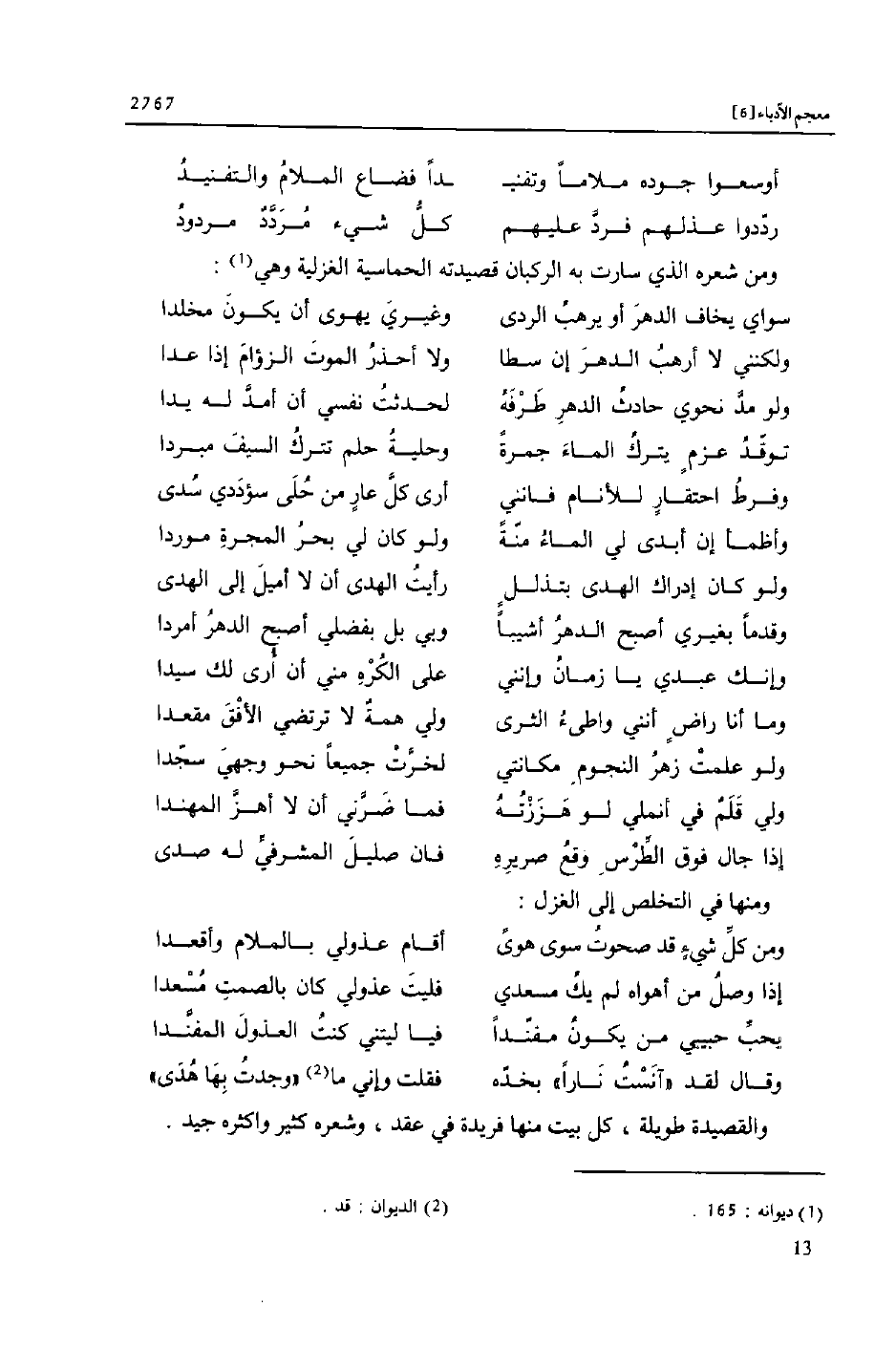 ومن شعره الذي سارت به الركبان قصيدته الحماسية الغزلية وهي «1» :