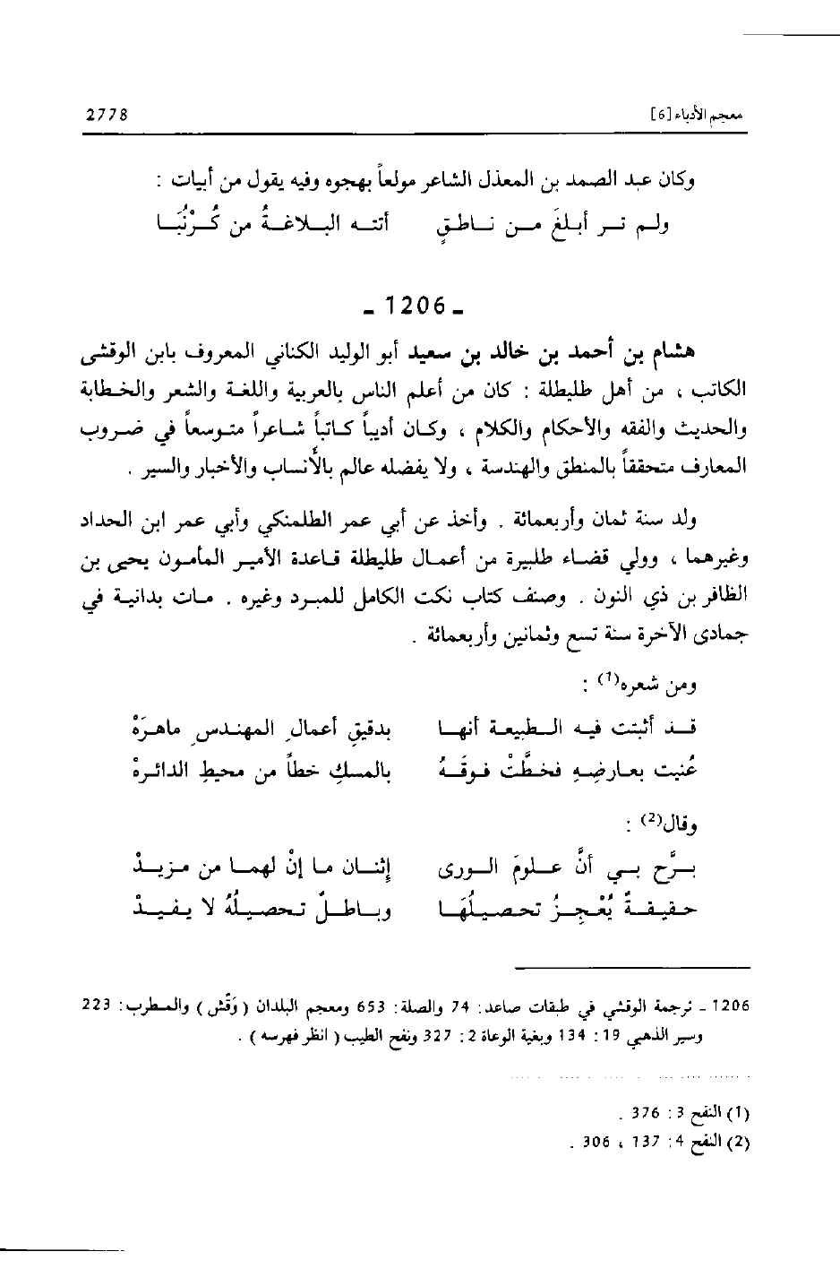 [1206] ترجمة الوقشي في طبقات صاعد: 74 والصلة: 653 ومعجم البلدان (وقّش) والمطرب: 223 وسير الذهبي 19: 134 وبغية الوعاة 2: 327 ونفح الطيب (انظر فهرسه) .