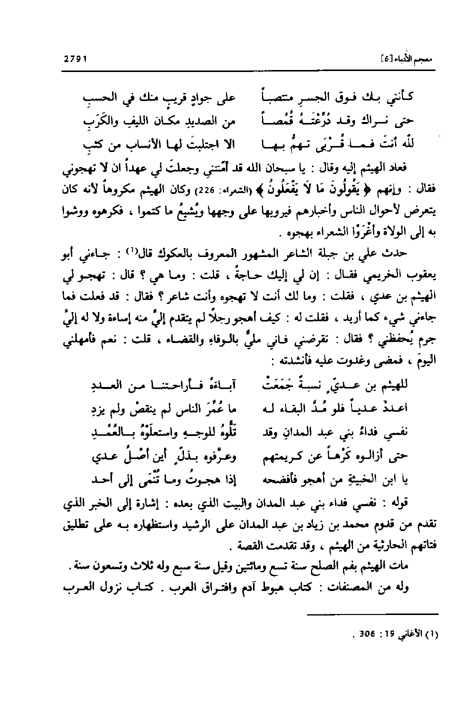 للهيثم بن عديّ نسبة جمعت ... آباءه فأراحتنا من العدد