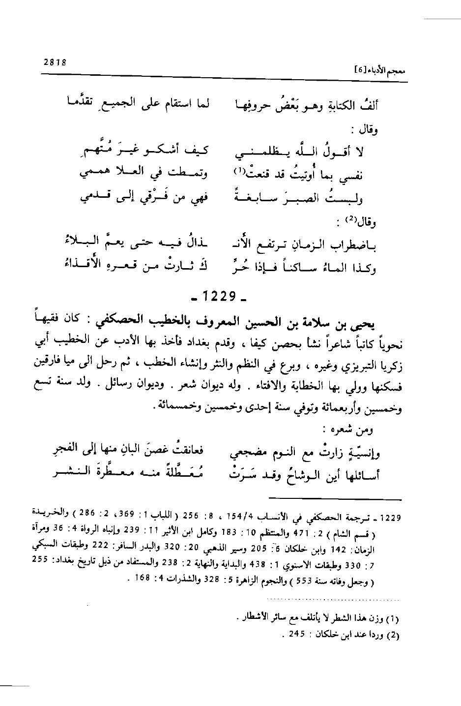 [1229] يحيى بن سلامة بن الحسين المعروف بالخطيب الحصكفي: