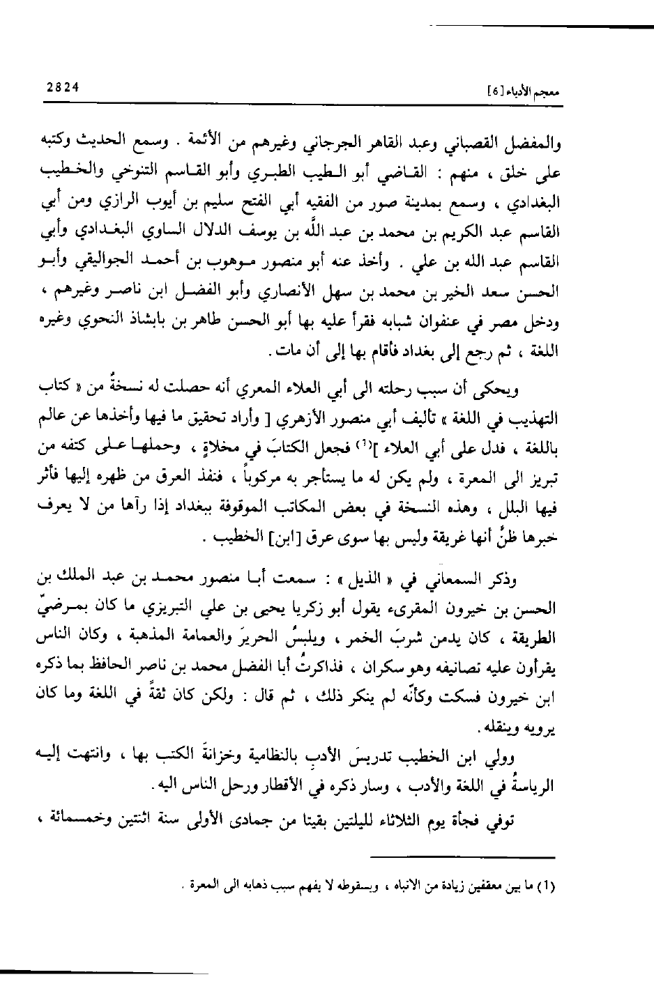 كتاب معجم الأدباء = إرشاد الأريب إلى معرفة الأديب (اسم الجزء: 6)