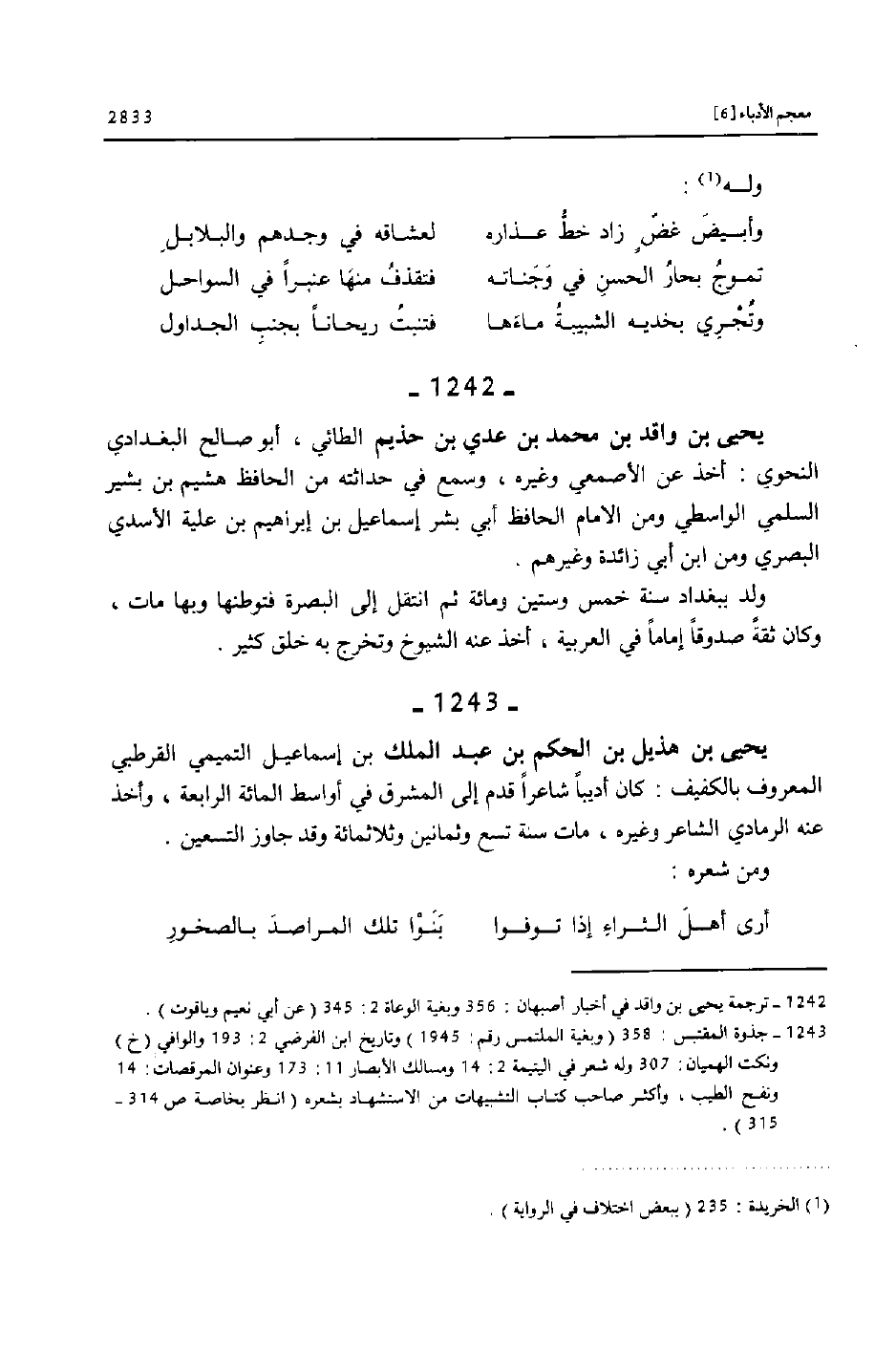 [1242] ترجمة يحيى بن واقد في أخبار أصبهان: 356 وبغية الوعاة 2: 345 (عن أبي نعيم وياقوت) .