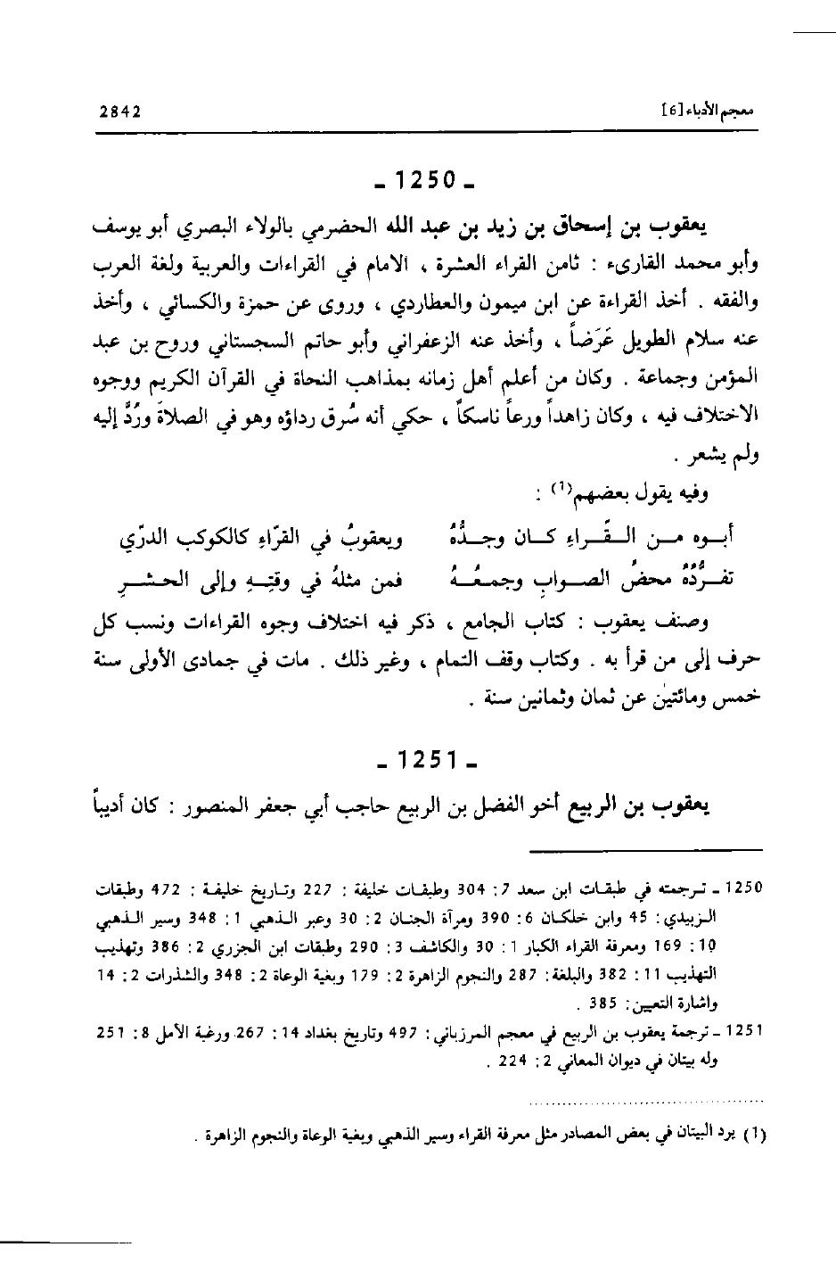 [1250] ترجمته في طبقات ابن سعد 7: 304 وطبقات خليفة: 227 وتاريخ خليفة: 472 وطبقات الزبيدي: 45 وابن خلكان 6: 390 ومرآة الجنان 2: 30 وعبر الذهبي 1: 348 وسير الذهبي 10: 169 ومعرفة القراء الكبار 1: 30 والكاشف 3: 290 وطبقات ابن الجزري 2: 386 وتهذيب التهذيب 11: 382 والبلغة: 287 والنجوم الزاهرة 2: 179 وبغية الوعاة 2: 348 والشذرات 2: 14 واشارة التعيين: 385.
