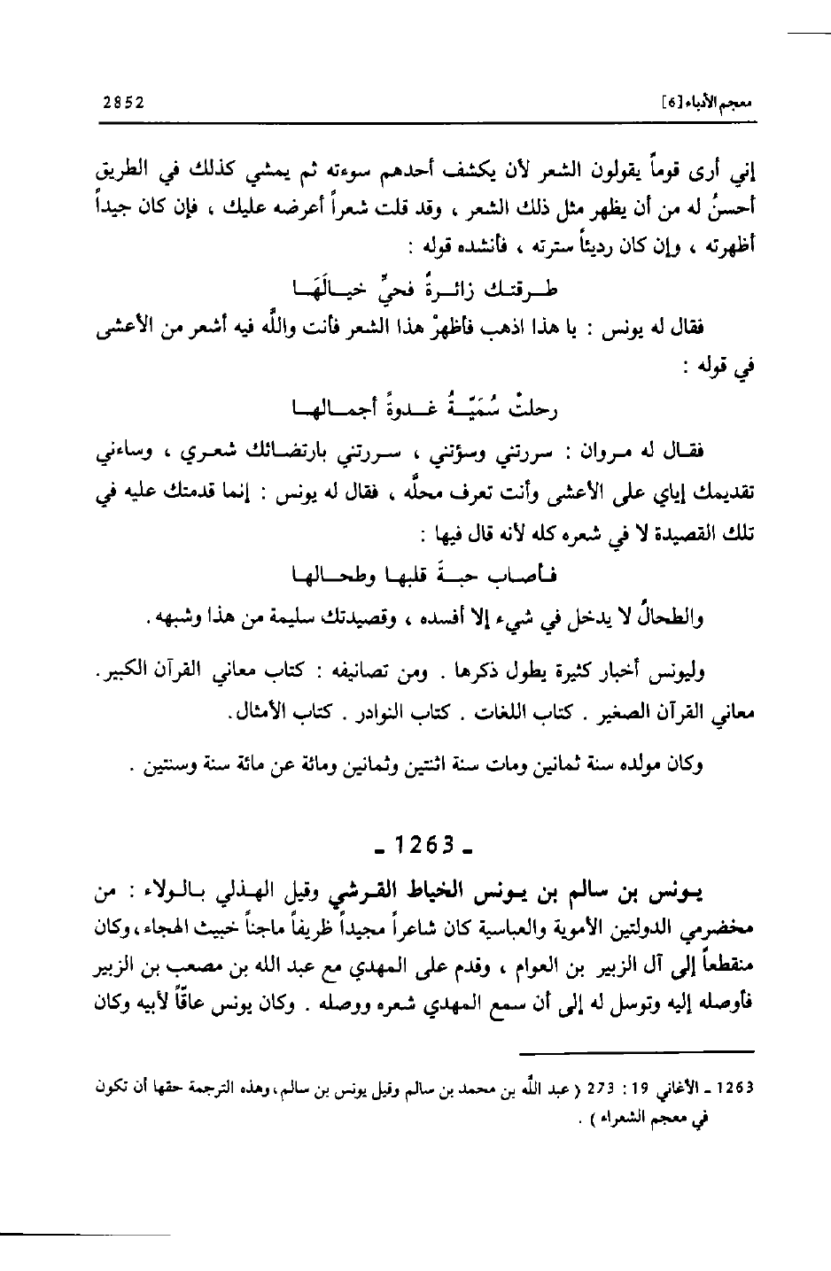 [1263] الأغاني 19: 273 (عبد الله بن محمد بن سالم وقيل يونس بن سالم، وهذه الترجمة حقها أن تكون في معجم الشعراء) .