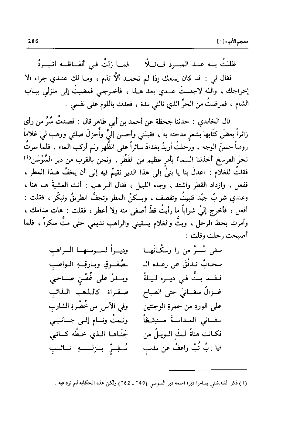 [1] ذكر الشابشتي بسامرا ديرا اسمه دير السوسي (149- 162) ولكن هذه الحكاية لم ترد فيه.