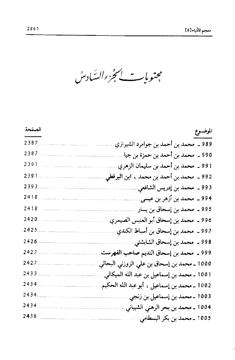 محتويات الجزء السّادس