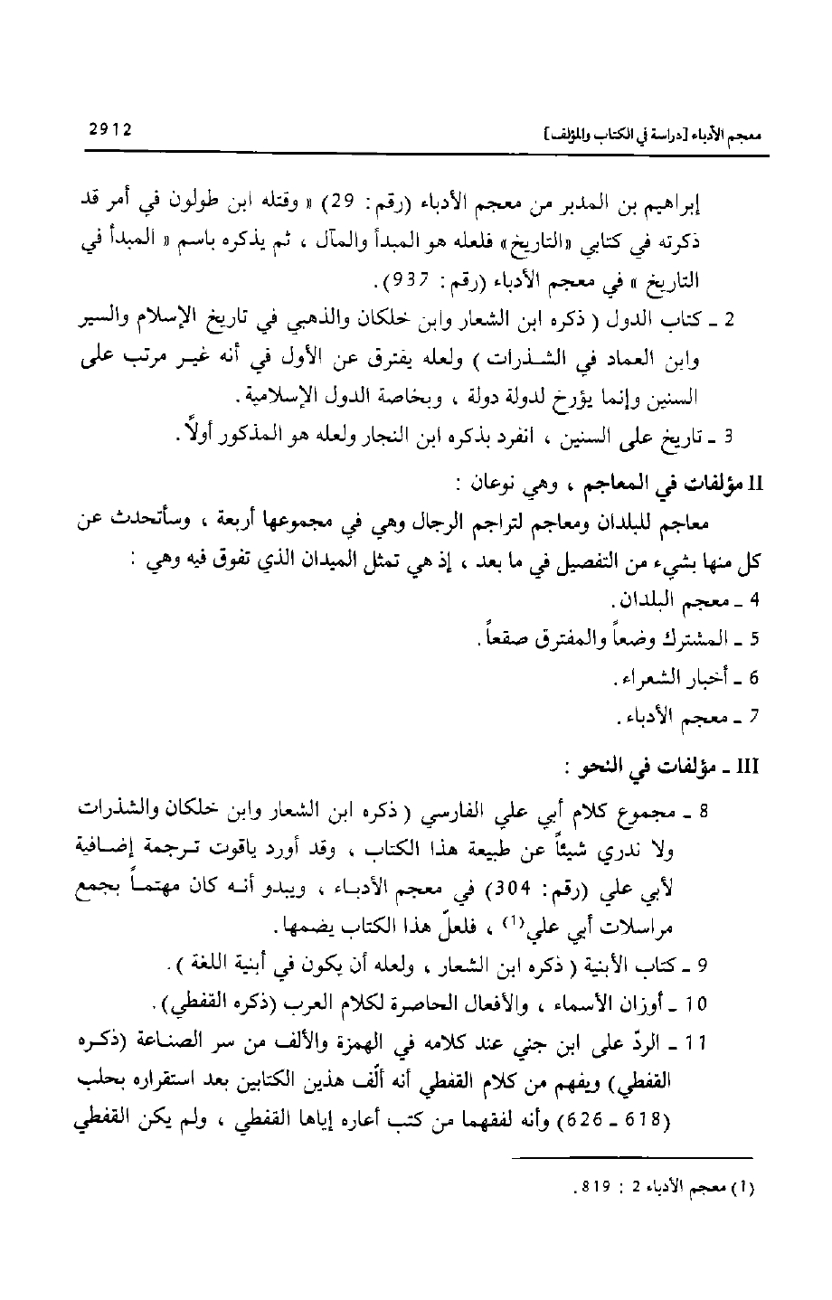 إبراهيم بن المدبر من معجم الأدباء (رقم: 29) «وقتله ابن طولون في أمر قد ذكرته في كتابي «التاريخ» فلعله هو المبدأ والمآل، ثم يذكره باسم «المبدأ في التاريخ» في معجم الأدباء (رقم: 937) .