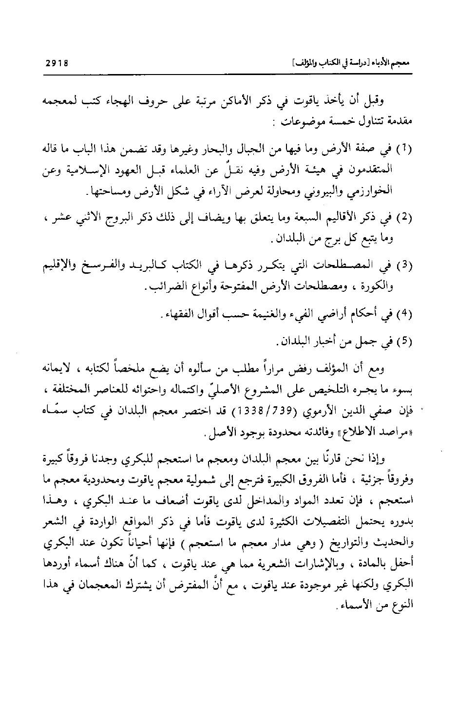 وقبل أن يأخذ ياقوت في ذكر الأماكن مرتبة على حروف الهجاء كتب لمعجمه مقدمة تتناول خمسة موضوعات: