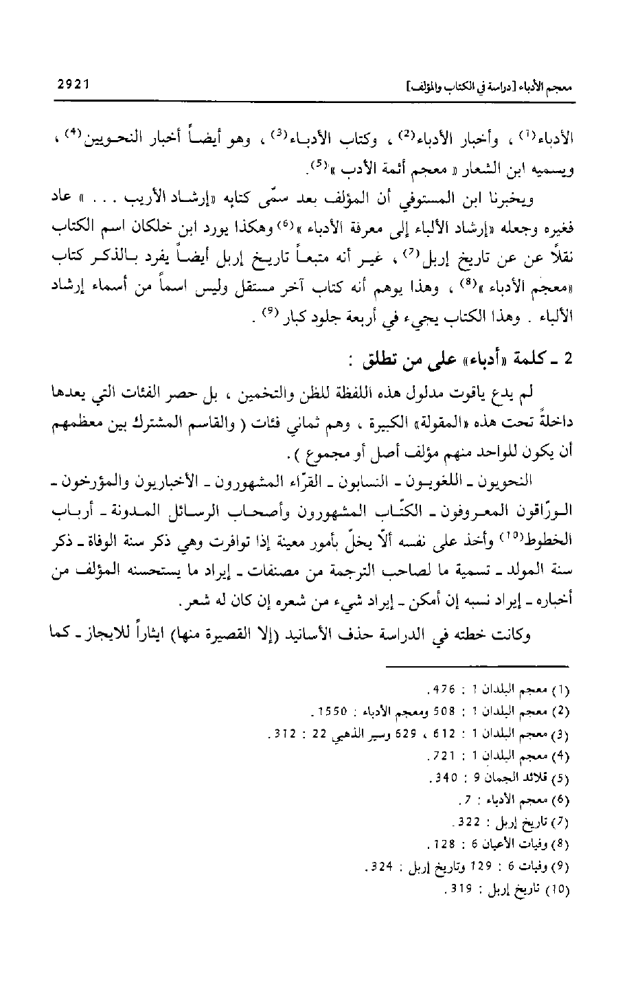 لم يدع ياقوت مدلول هذه اللفظة للظن والتخمين، بل حصر الفئات التي يعدها داخلة تحت هذه «المقولة» الكبيرة، وهم ثماني فئات (والقاسم المشترك بين معظمهم أن يكون للواحد منهم مؤلف أصل أو مجموع) .