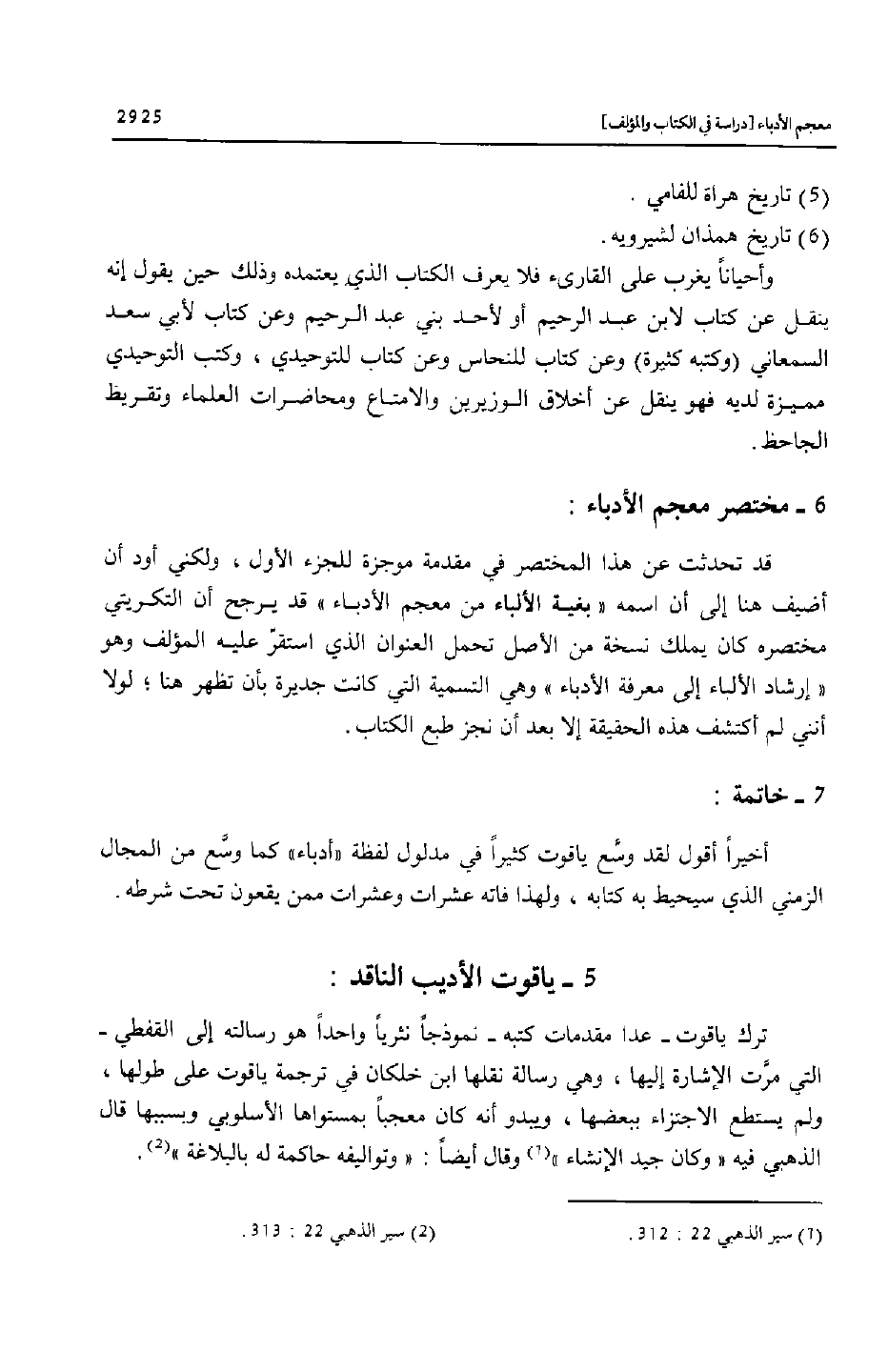 أخيرا أقول لقد وسّع ياقوت كثيرا في مدلول لفظة «أدباء» كما وسّع من المجال الزمني الذي سيحيط به كتابه، ولهذا فاته عشرات وعشرات ممن يقعون تحت شرطه.