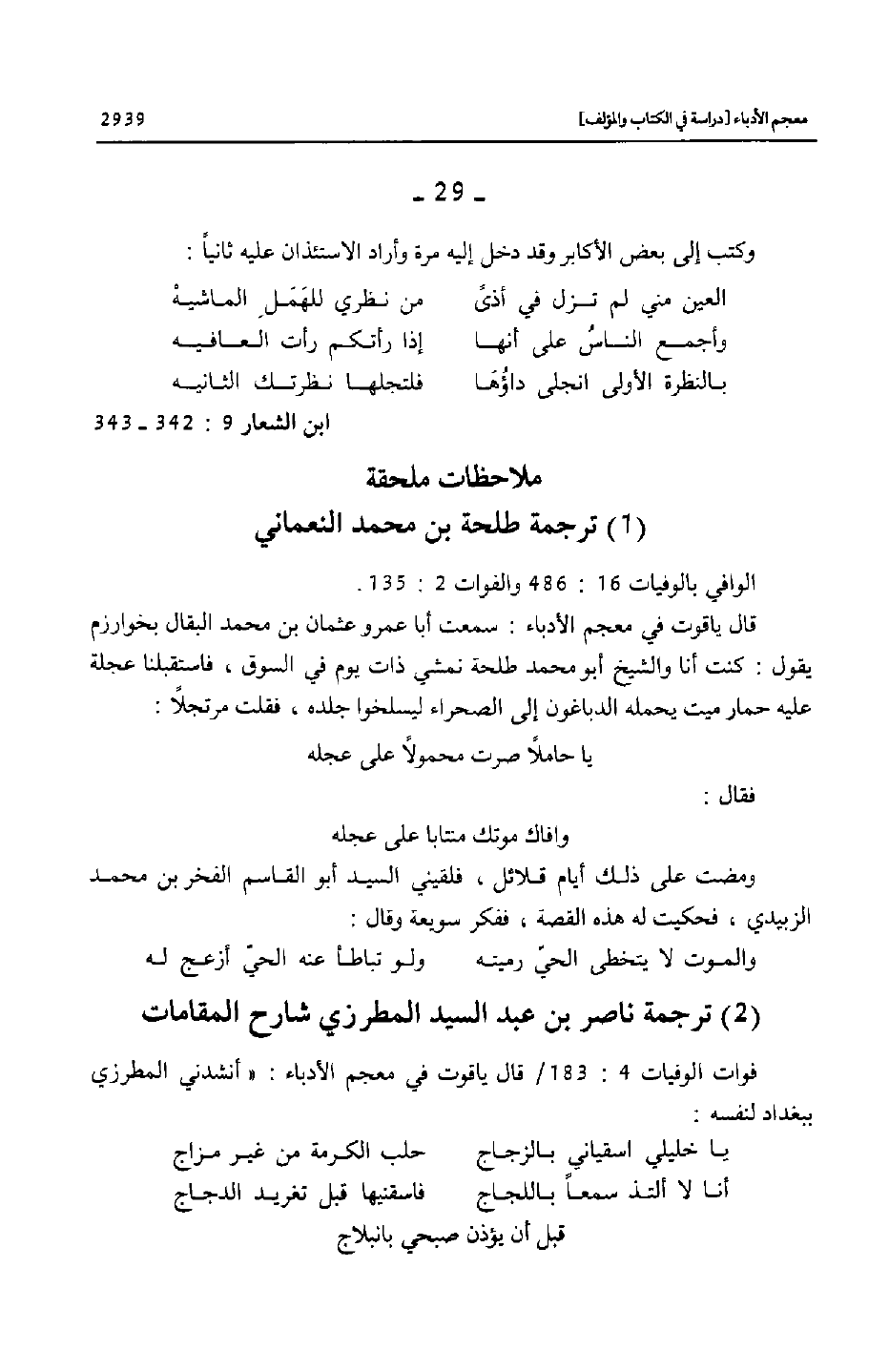 فوات الوفيات 4: 183/قال ياقوت في معجم الأدباء: «أنشدني المطرزي ببغداد لنفسه:
