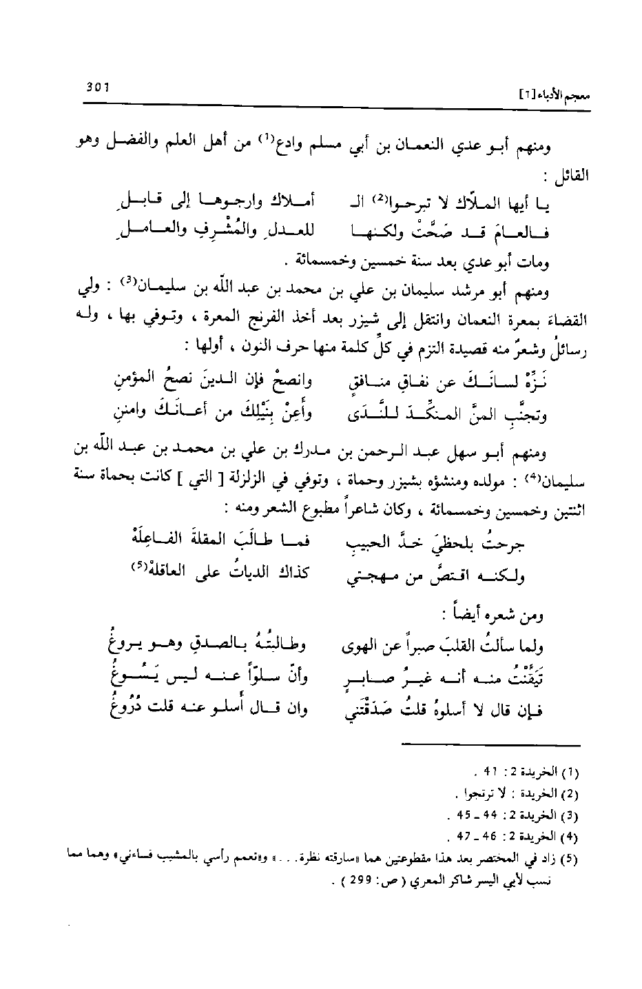 [5] زاد في المختصر بعد هذا مقطوعتين هما «سارقته نظرة ... » و «تعمم رأسي بالمشيب فساءني» وهما مما نسب لأبي اليسر شاكر المعري (ص: 299) .