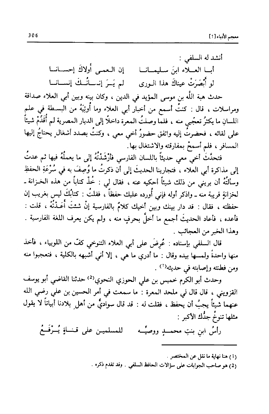 [2] هو صاحب الجوابات على سؤالات الحافظ السلفي. وقد تقدم ذكره.