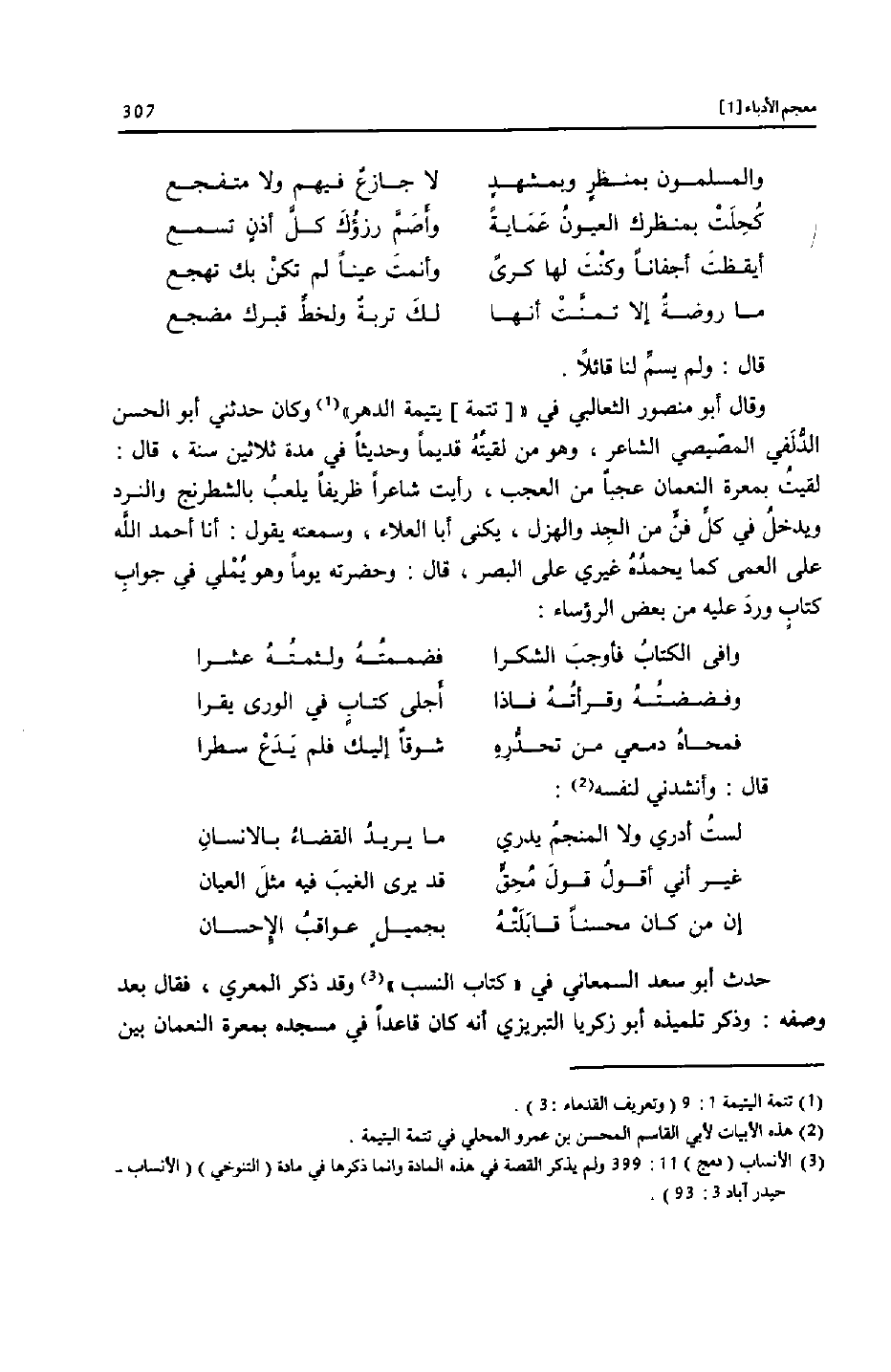 [3] الأنساب (دمج) 11: 399 ولم يذكر القصة في هذه المادة وانما ذكرها في مادة (التنوخي) (الأنساب- حيدر آباد 3: 93) .