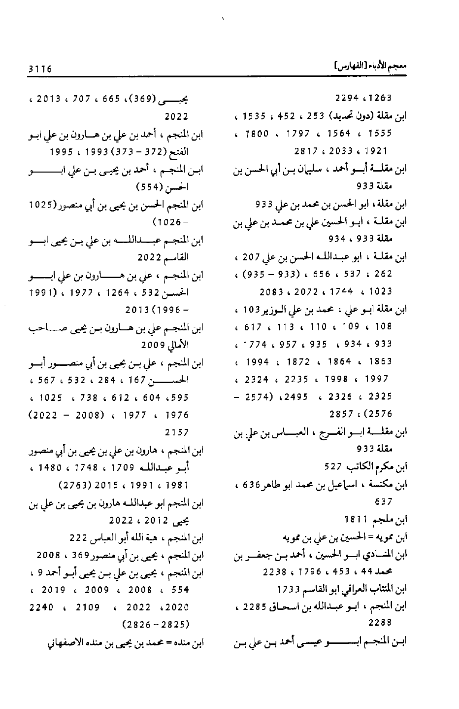 ابن المنجم، يحيى بن علي بن يحيى أبو أحمد 9، 554، 2008، 2009، 2019، 2020، 2022، 2109، 2240 (2825- 2826)