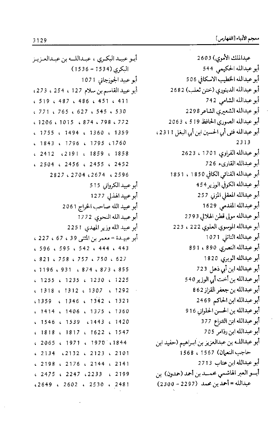 أبو عبيد القاسم بن سلام 127، 254، 273، 411، 451، 486، 487، 519، 530، 545، 627، 765، 771، 772، 798، 874، 1015، 1206، 1359، 1360، 1494، 1755، 1760، 1795، 1796، 1843، 1858، 1859، 2191، 2412، 2452، 2455، 2456، 2504، 2596، 2674، 2704، 2827