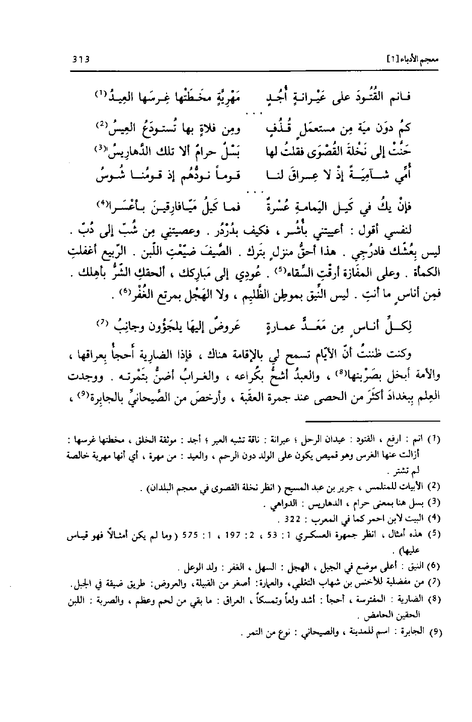 [7] من مفضلية للأخنس بن شهاب التغلبي، والعمارة: أصغر من القبيلة، والعروض: طريق ضيقة في الجبل.