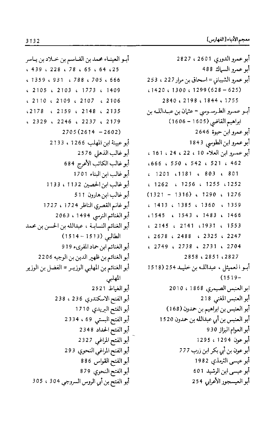 أبو العيناء محمد بن القاسم بن خلاد بن ياسر 25، 64، 65، 78، 228، 439، 666، 705، 788، 931، 1359، 1409، 1773، 2103، 2105، 2106، 2107، 2109، 2110، 2135، 2148، 2159، 2178، 2179، 2237، 2246، 2329، (2602- 2614) 2705