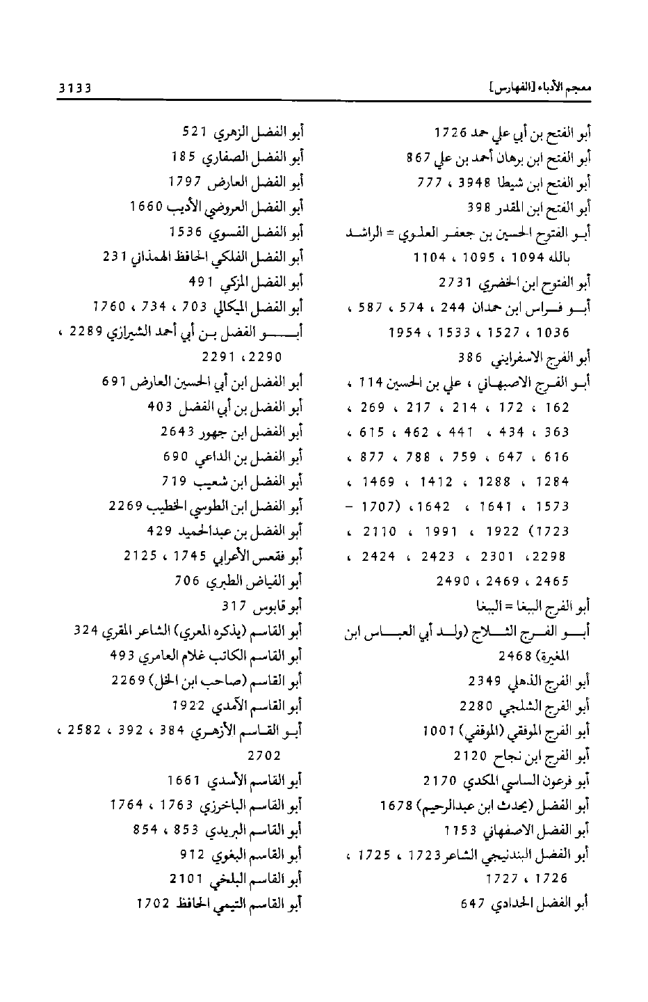 أبو الفرج الاصبهاني، علي بن الحسين 114، 162، 172، 214، 217، 269، 363، 434، 441، 462، 615، 616، 647، 759، 788، 877، 1284، 1288، 1412، 1469، 1573، 1641، 1642، (1707- 1723) 1922، 1991، 2110، 2298، 2301، 2423، 2424، 2465، 2469، 2490