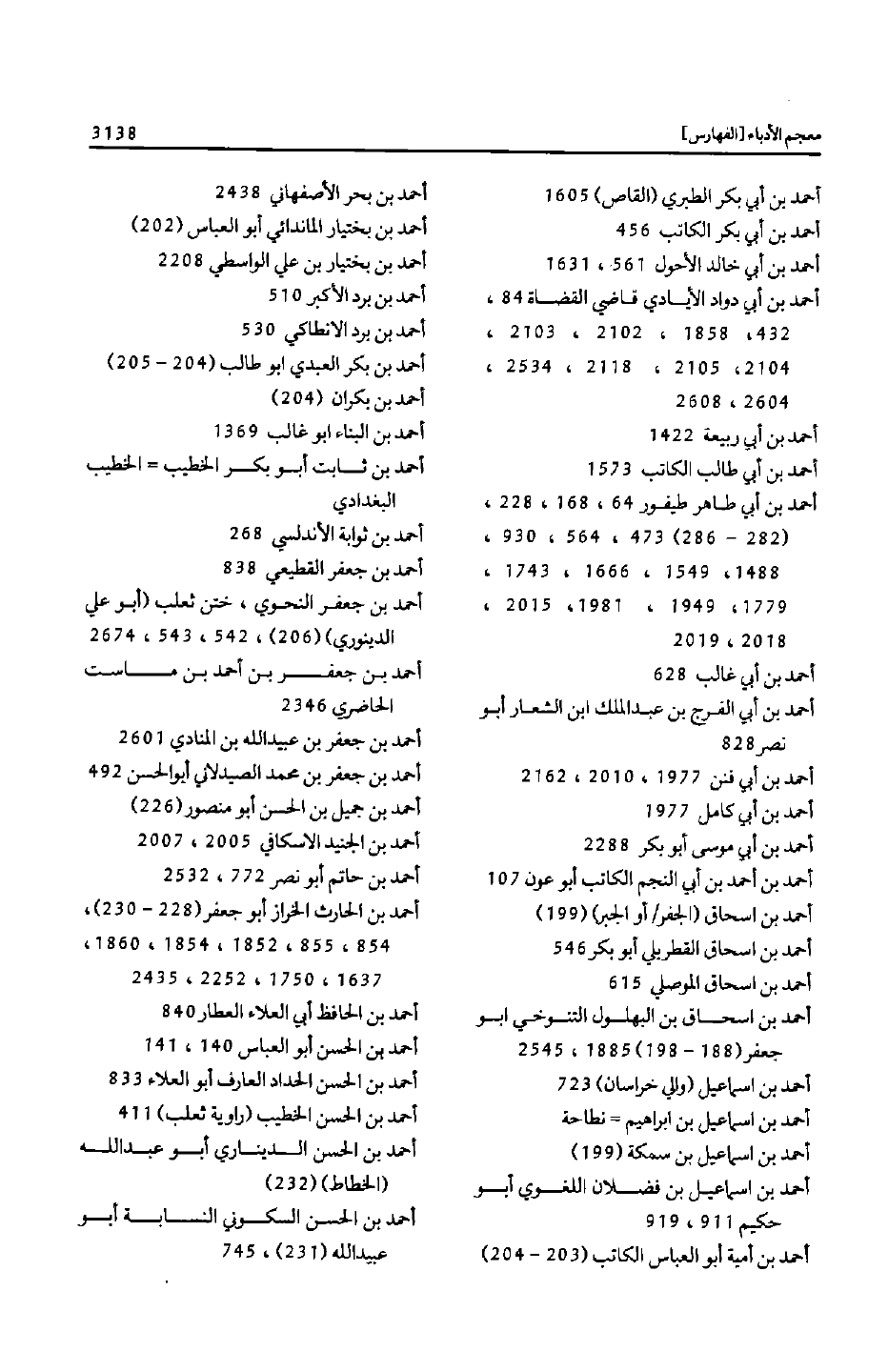أحمد بن أبي طاهر طيفور 64، 168، 228، (282- 286) 473، 564، 930، 1488، 1549، 1666، 1743، 1779، 1949، 1981، 2015، 2018، 2019