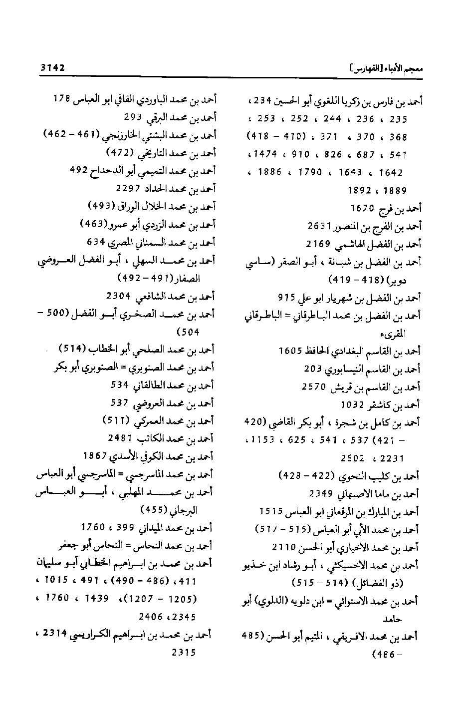 أحمد بن فارس بن زكريا اللغوي أبو الحسين 234، 235، 236، 244، 252، 253، 368، 370، 371، (410- 418) 541، 687، 826، 910، 1474، 1642، 1643، 1790، 1886، 1889، 1643، 1790، 1886، 1889، 1892
