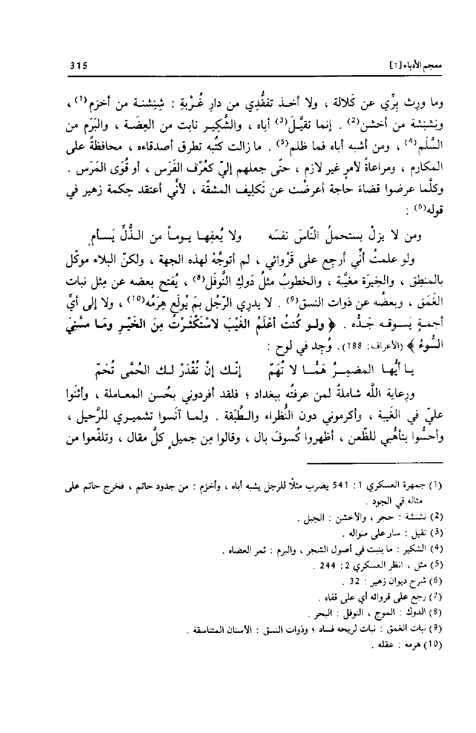 وكلّما عرضوا قضاء حاجة أعرضت عن تكليف المشقّة، لأنّي أعتقد حكمة زهير في قوله [6] :