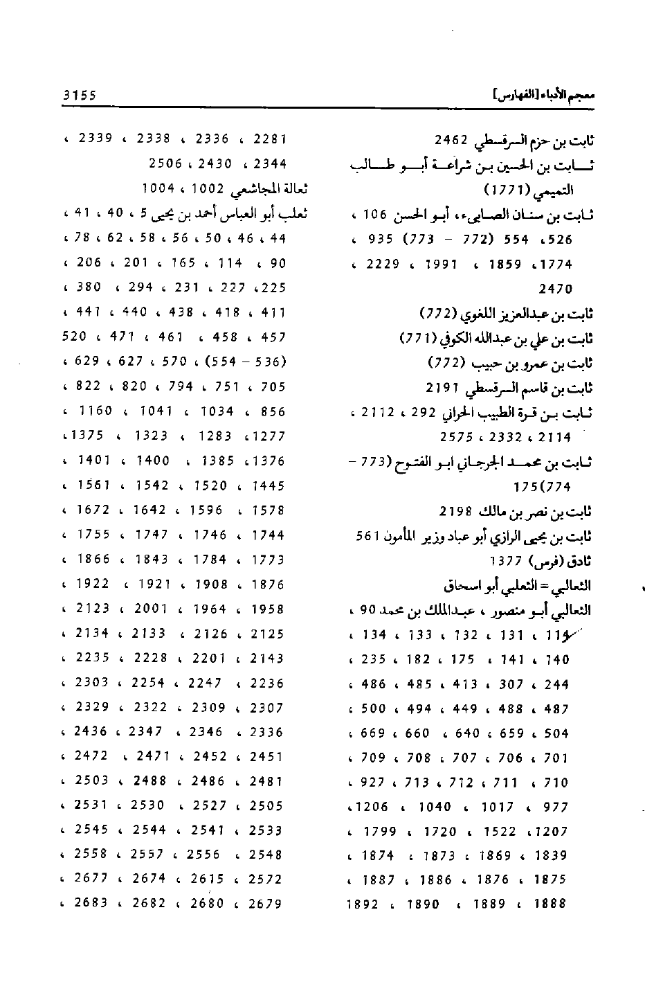 ثابت بن سنان الصابىء، أبو الحسن 106، 526، 554 (772- 773) 935، 1774، 1859، 1991، 2229، 2470