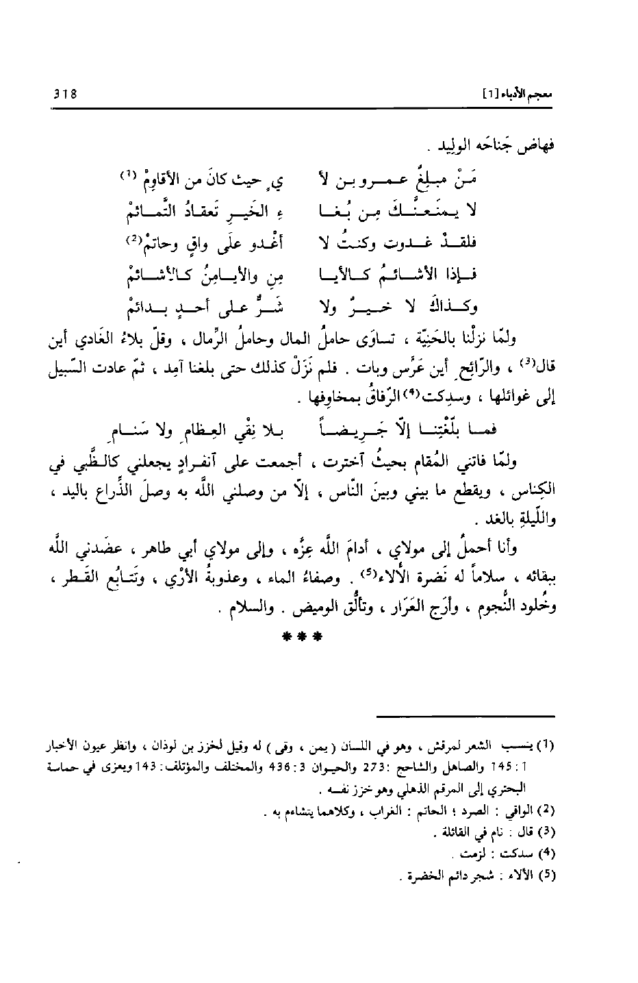 [1] ينسب الشعر لمرقش، وهو في اللسان (يمن، وقى) له وقيل لخزز بن لوذان، وانظر عيون الأخبار 1: 145 والصاهل والشاحج: 273 والحيوان 3: 436 والمختلف والمؤتلف: 143 ويعزى في حماسة البحتري إلى المرقم الذهلي وهو خزز نفسه.