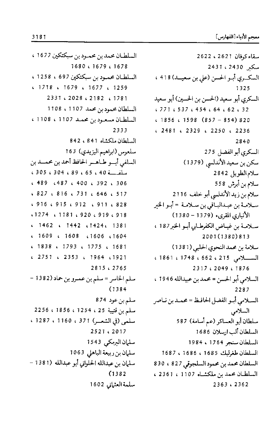 السلفي أبو طاهر الحافظ أحمد بن محمد بن سلفة 40، 65، 89، 304، 305، 306، 392، 400، 487، 489، 517، 646، 731، 816، 827، 828، 911، 912، 915، 916، 918، 919، 920، 1181، 1274، 1381، 1424، 1442، 1462، 1604، 1606، 1608، 1609، 1681، 1775، 1793، 1838، 1921، 1964، 2353، 2751، 2765، 2815
