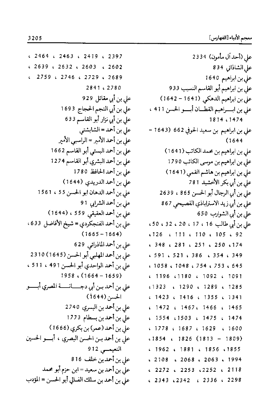 علي بن أبي طالب 16، 17، 20، 32، 50، 92، 105، 110، 111، 126، 174، 250، 251، 281، 348، 349، 354، 386، 521، 591، 645، 753، 754، 1048، 1058، 1091، 1092، 1180، 1196، 1285، 1289، 1290، 1323، 1341، 1355، 1416، 1423، 1465، 1466، 1467، 1472، 1474، 1475، 1503، 1554، 1600، 1629، 1687، 1778، (1809- 1813) 1826، 1854، 1855، 1856، 1881، 1962، 1994، 2063، 2068، 2108، 2118، 2252، 2253، 2272، 2298، 2336، 2342، 2343،