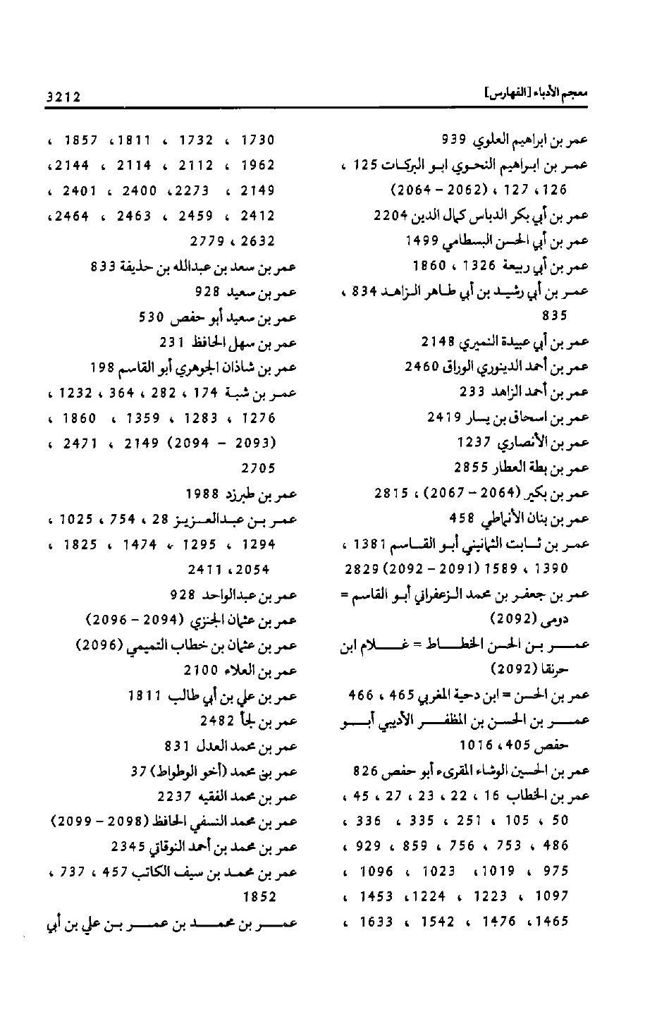 عمر بن الخطاب 16، 22، 23، 27، 45، 50، 105، 251، 335، 336، 486، 753، 756، 859، 929، 975، 1019، 1023، 1096، 1097، 1223، 1224، 1453، 1465، 1476، 1542، 1633،