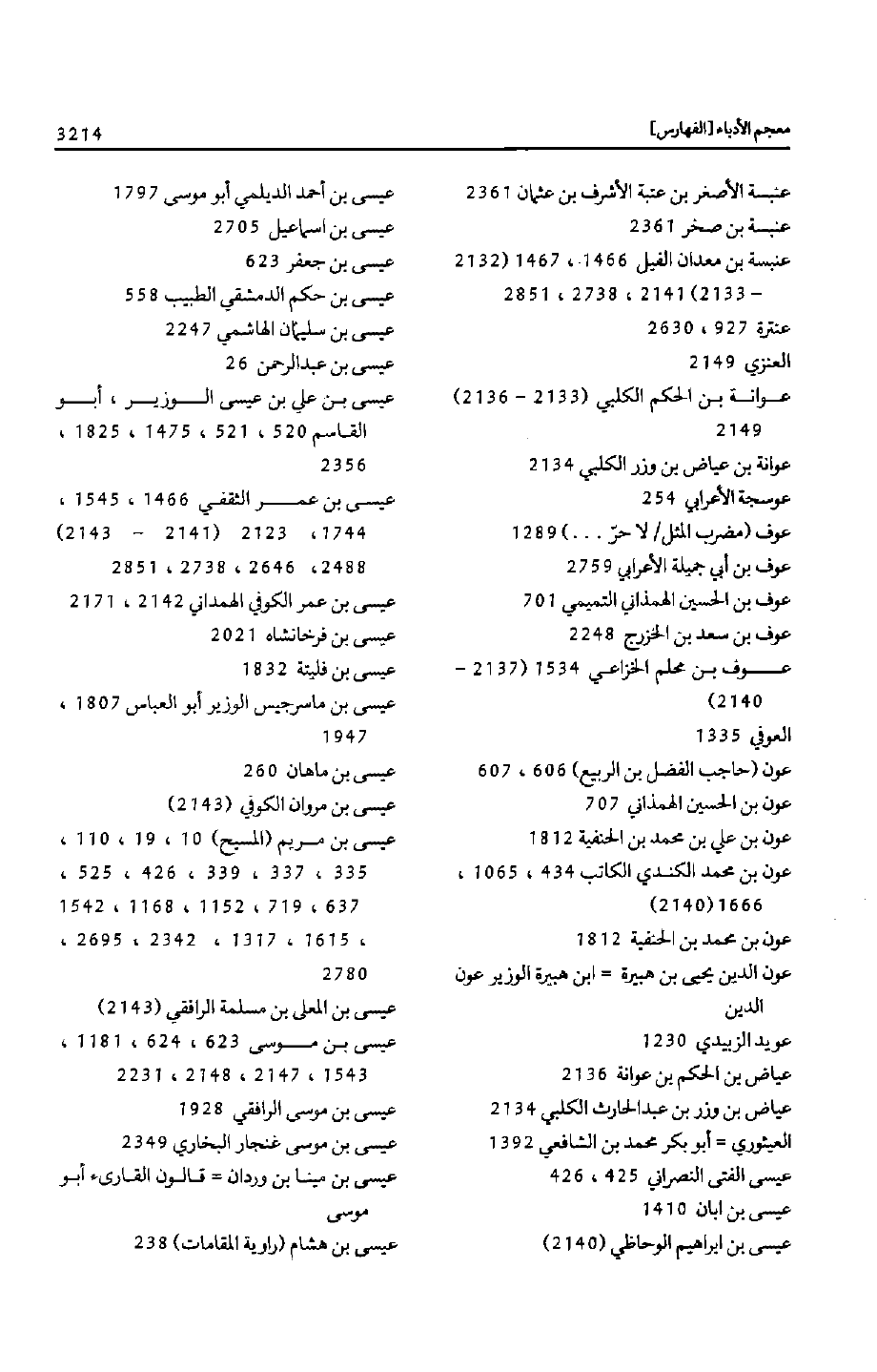 عيسى بن عمر الثقفي 1466، 1545، 1744، 2123 (2141- 2143) 2488، 2646، 2738، 2851