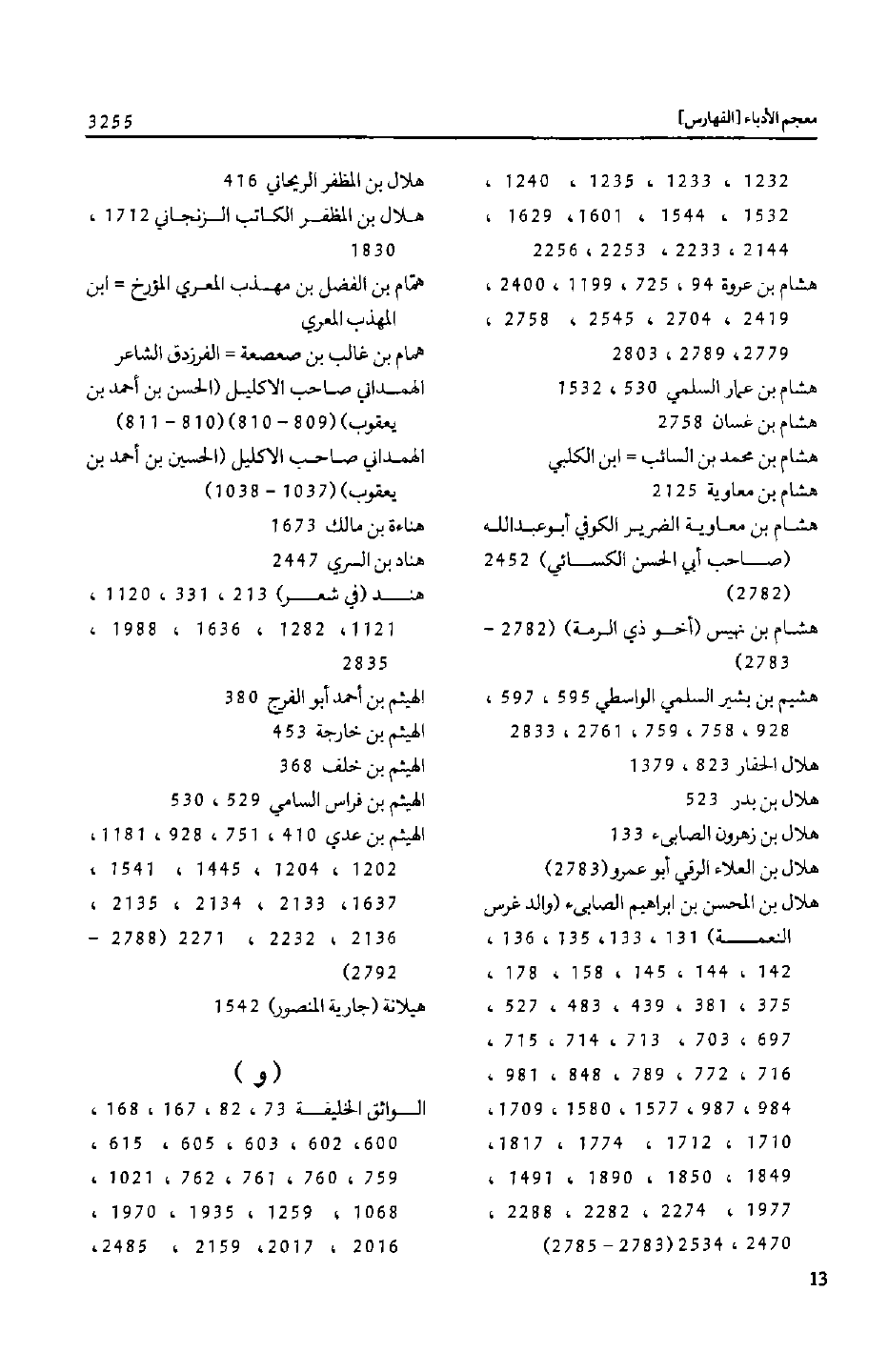 هلال بن المحسن بن ابراهيم الصابىء (والد غرس النعمة) 131، 133، 135، 136، 142، 144، 145، 158، 178، 375، 381، 439، 483، 527، 697، 703، 713، 714، 715، 716، 772، 789، 848، 981، 984، 987، 1577، 1580، 1709، 1710، 1712، 1774، 1817، 1849، 1850، 1890، 1491، 1977، 2274، 2282، 2288، 2470، 2534 (2783- 2785)