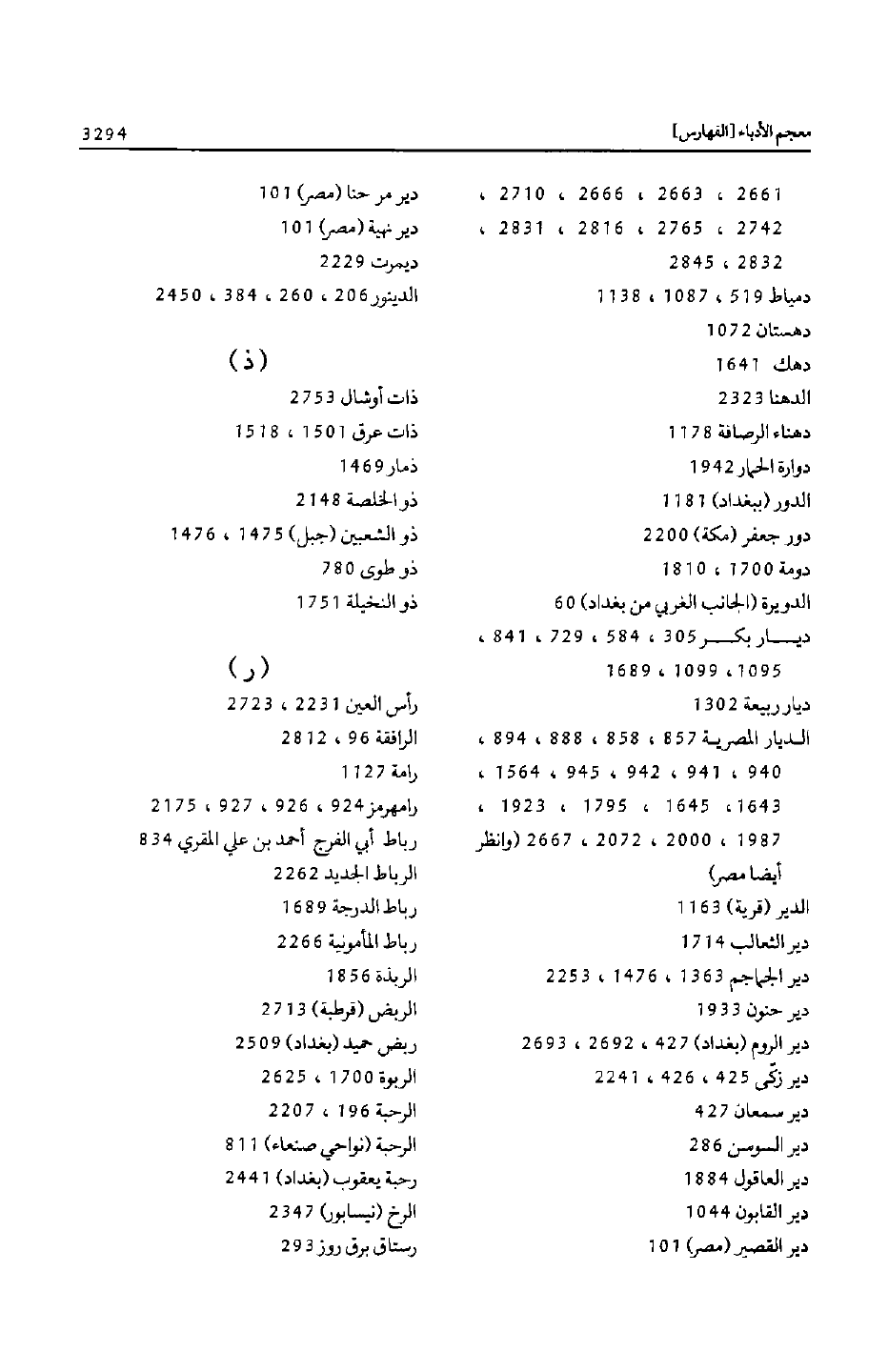 الديار المصرية 857، 858، 888، 894، 940، 941، 942، 945، 1564، 1943، 1645، 1795، 1923، 1987، 2000، 2072، 2667 (وانظر أيضا مصر) الدير (قرية) 1163