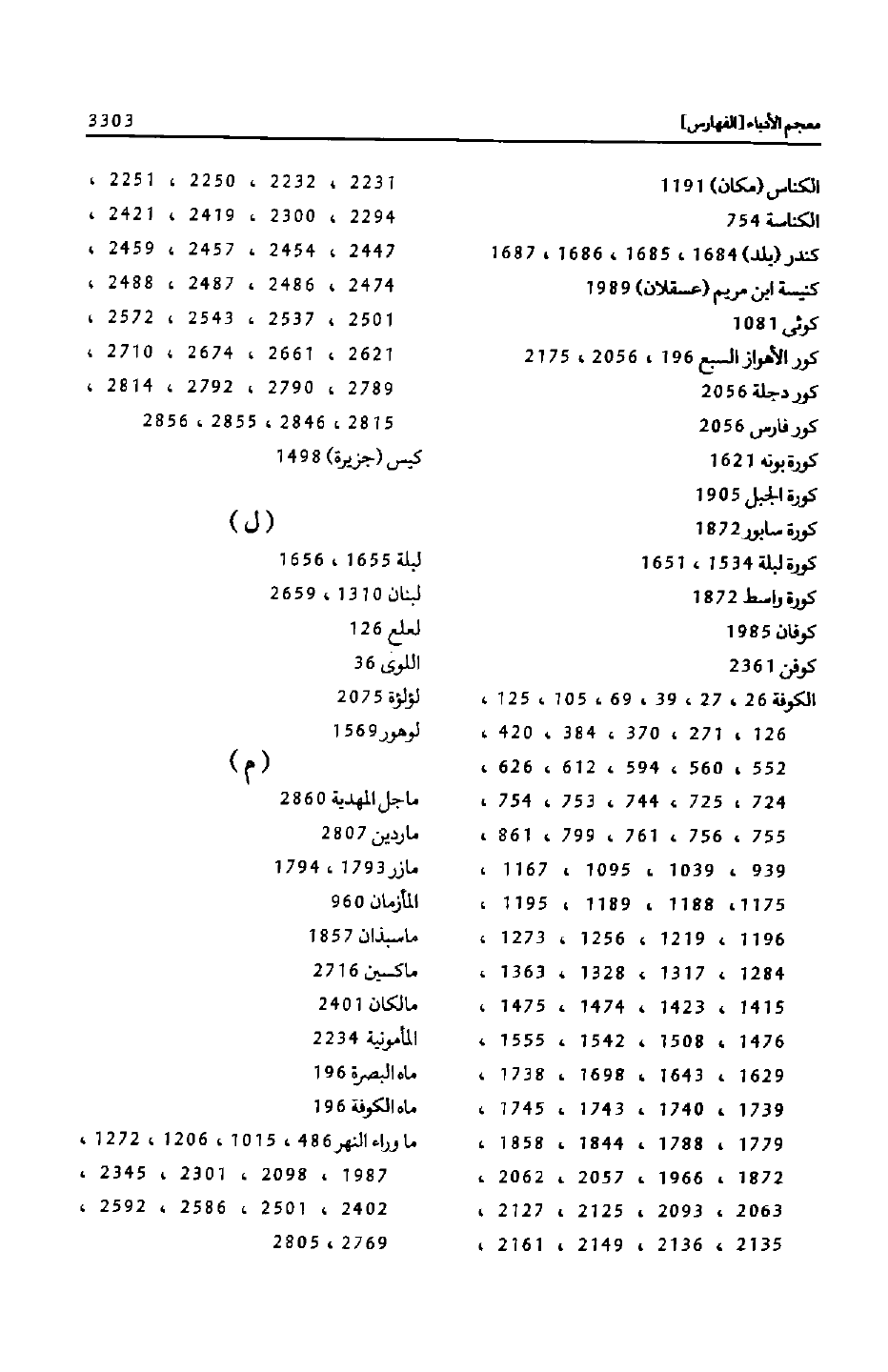 الكوفة 26، 27، 39، 69، 105، 125، 126، 271، 370، 384، 420، 552، 560، 594، 612، 626، 724، 725، 744، 753، 754، 755، 756، 761، 799، 861، 939، 1039، 1095، 1167، 1175، 1188، 1189، 1195، 1196، 1219، 1256، 1273، 1284، 1317، 1328، 1363، 1415، 1423، 1474، 1475، 1476، 1508، 1542، 1555، 1629، 1643، 1698، 1738، 1739، 1740، 1743، 1745، 1779، 1488، 1844، 1858، 1872، 1966، 2057، 2062، 2063، 2093، 2125، 2127، 2135، 2136، 2149، 2161،