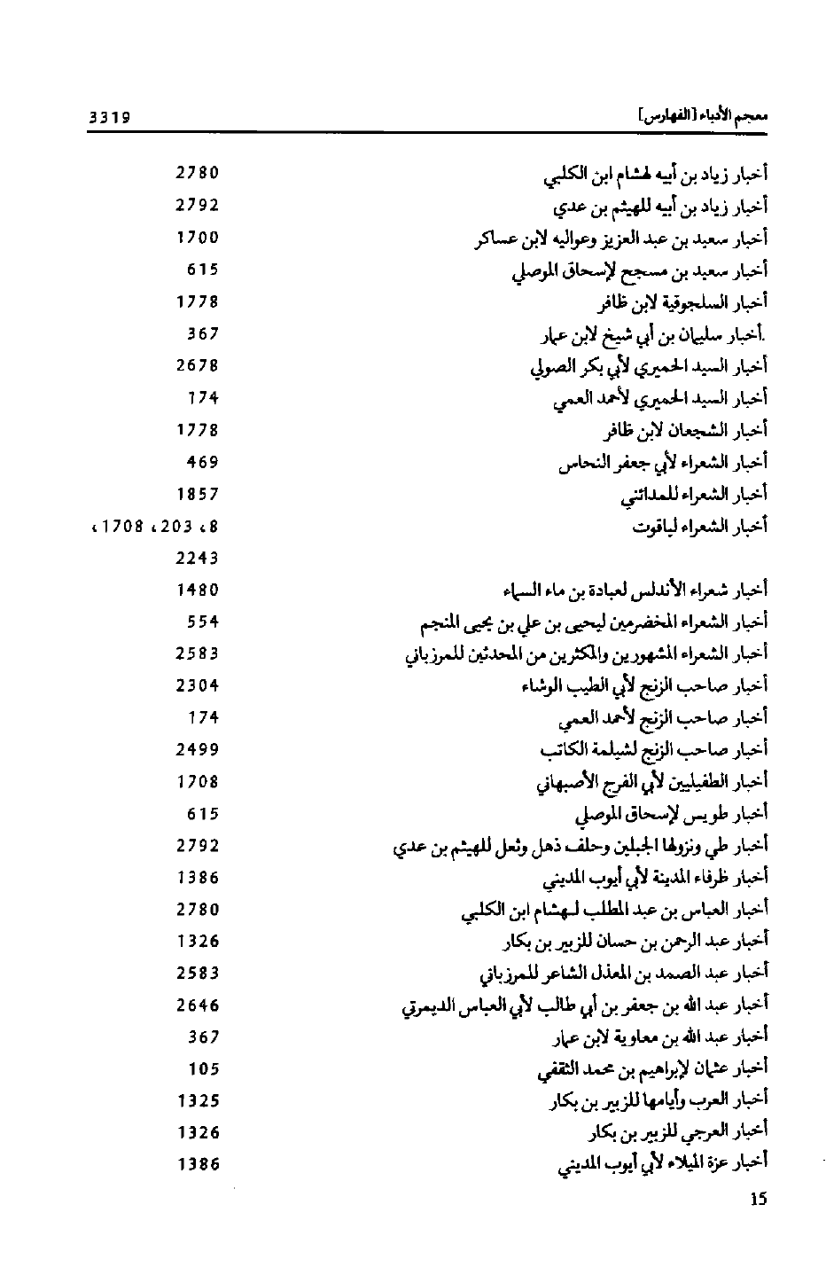 أخبار الشعراء لياقوت 8، 203، 1708، 2243