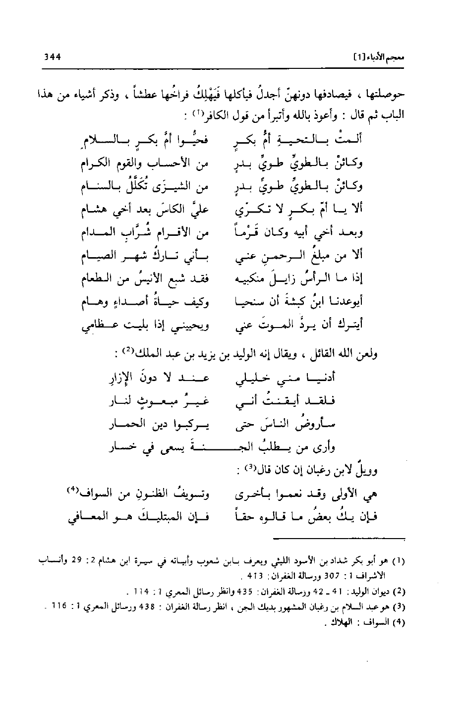 [2] ديوان الوليد: 41- 42 ورسالة الغفران: 435 وانظر رسائل المعري 1: 114.