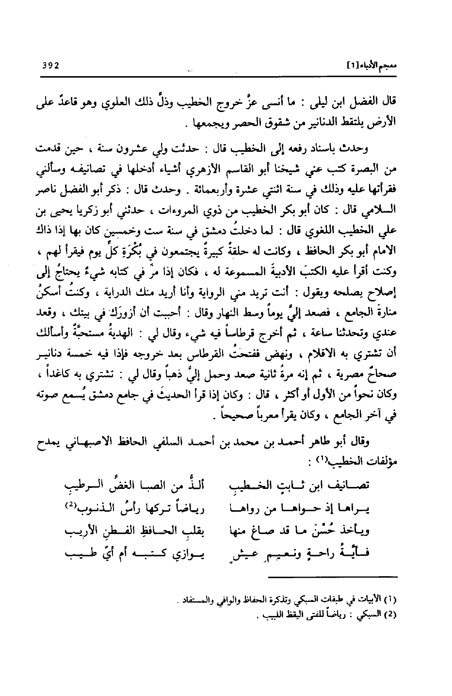 [1] الأبيات في طبقات السبكي وتذكرة الحفاظ والوافي والمستفاد.