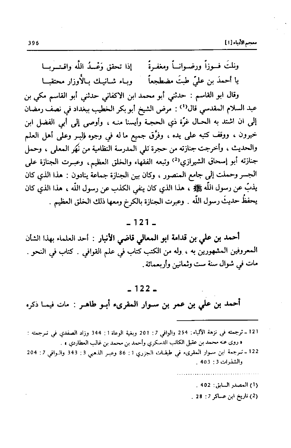 [121]- ترجمته في نزهة الألباء: 254 والوافي 7: 201 وبغية الوعاة 1: 344 وزاد الصفدي في ترجمته: