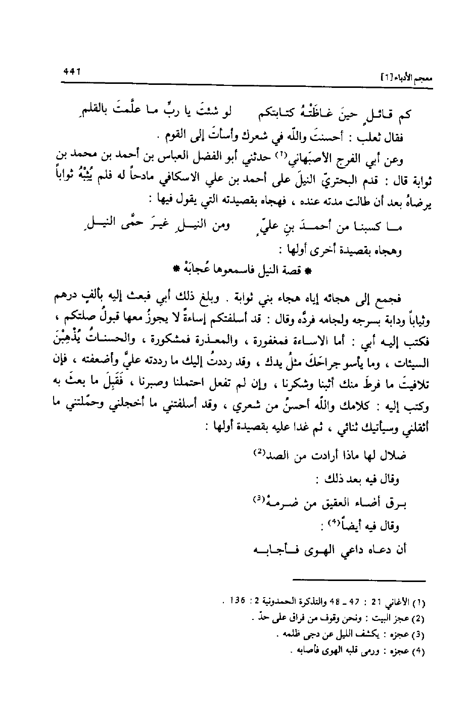 [1] الأغاني 21: 47- 48 والتذكرة الحمدونية 2: 136.